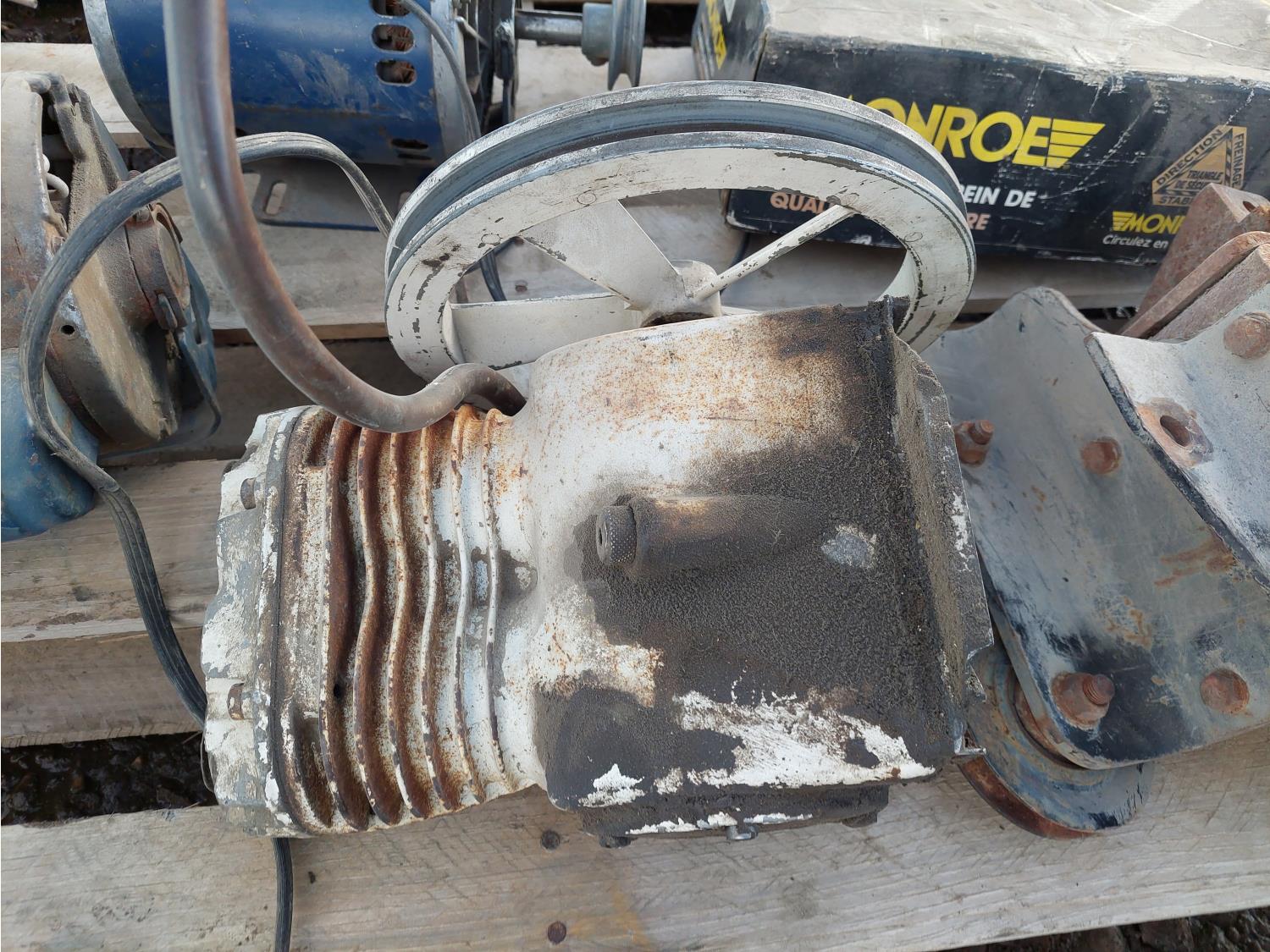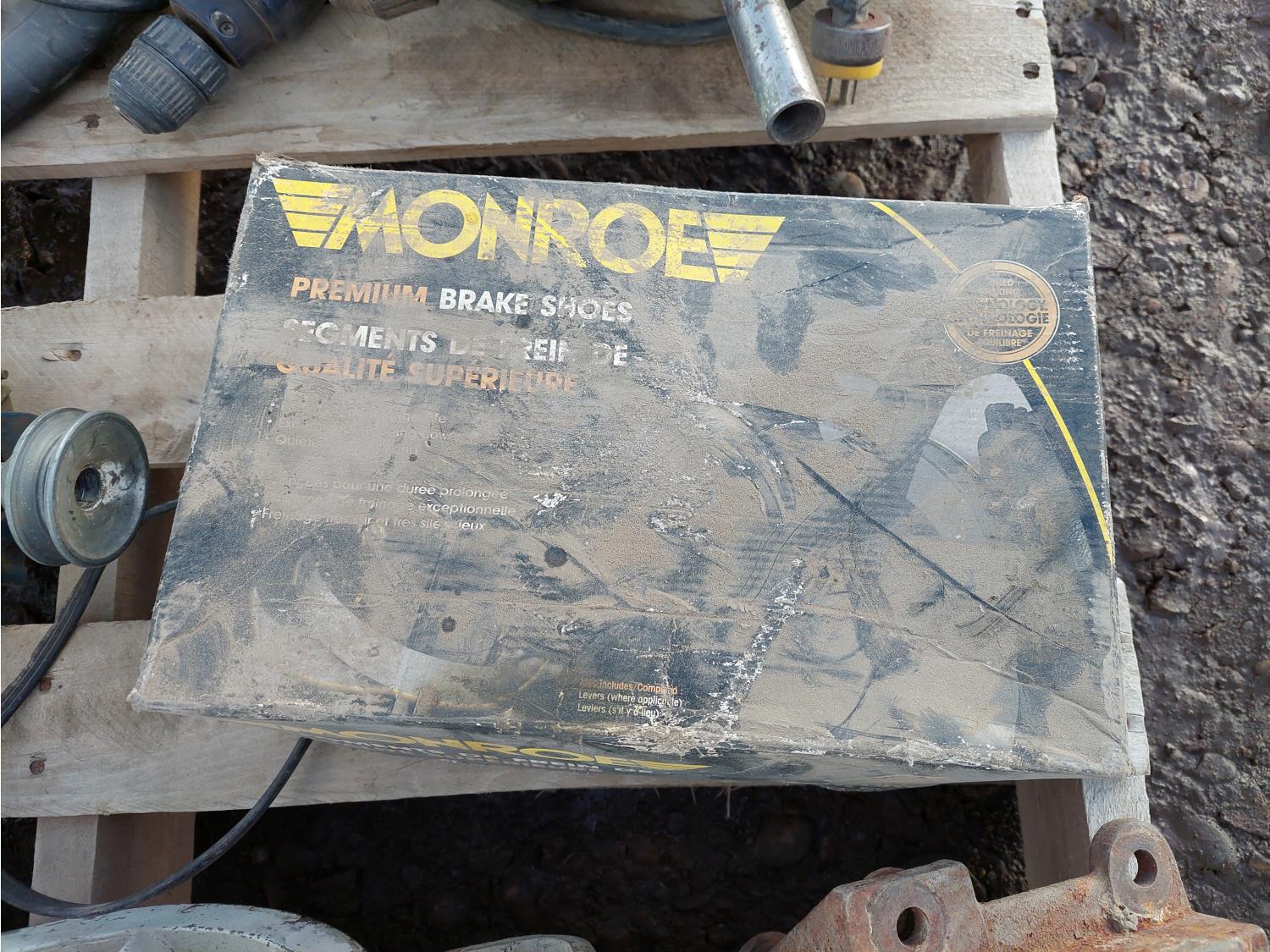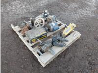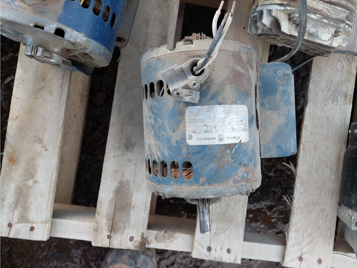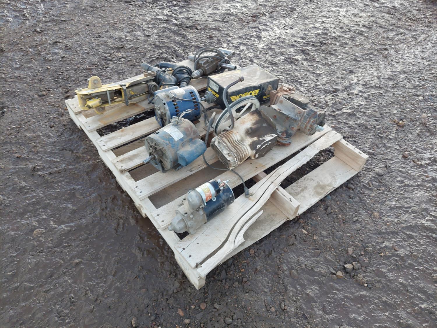 (2) GE 1/2 HP 115V motors, (3) corded drills, (1) 3733MS starter, (1) Power Fist 2 ton floor jack, (1) box Monroe brake pads