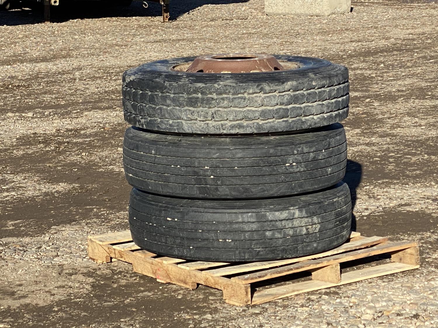 1914 Qty of (3) 11R22.5 Regroovable Tires w/ Rims