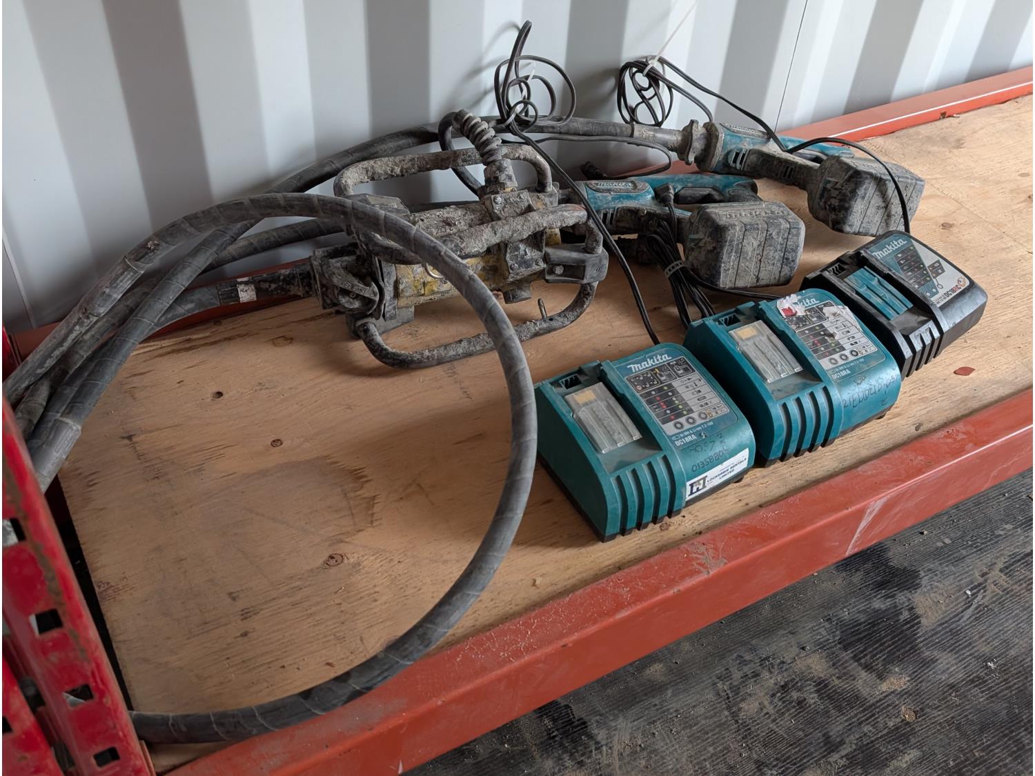 1135 Qty of (3) Handheld Concrete Vibrators w/ Qty of (3) Makita Chargers