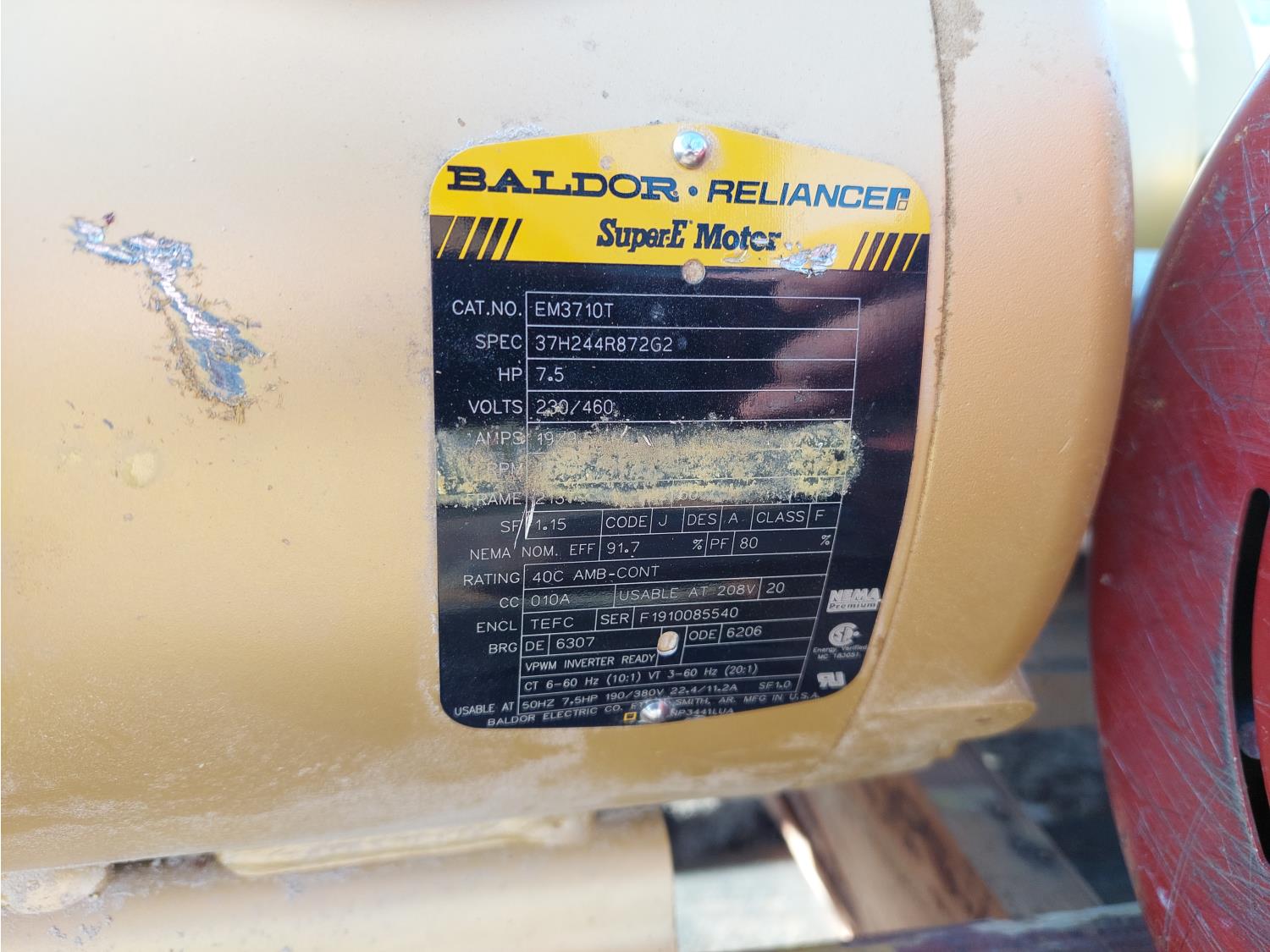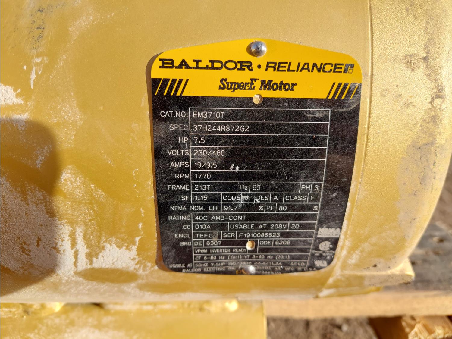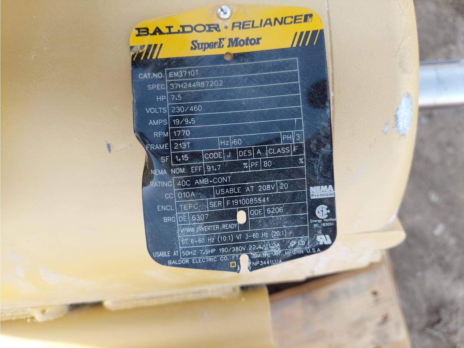 (4) Baldor EM3710T 230/460 Volts, 7.5 HP, PH 3