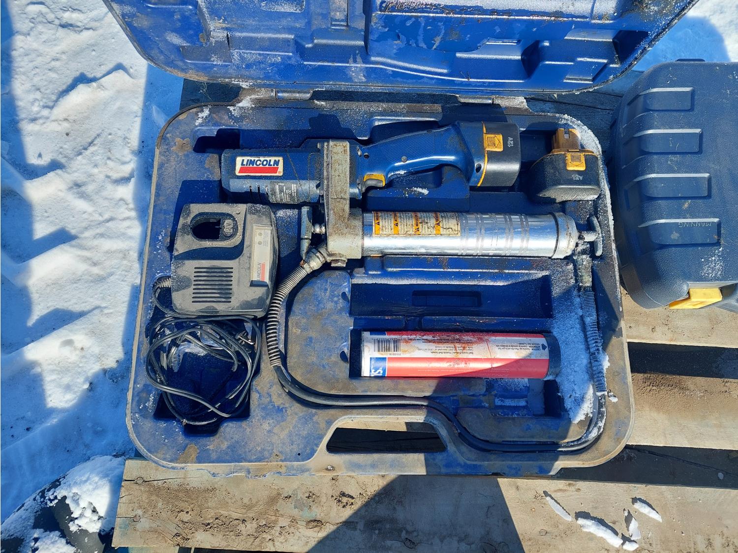 (1) 1/2 inch Mastercraft impact wrench, (1) Lincoln 12V grease gun