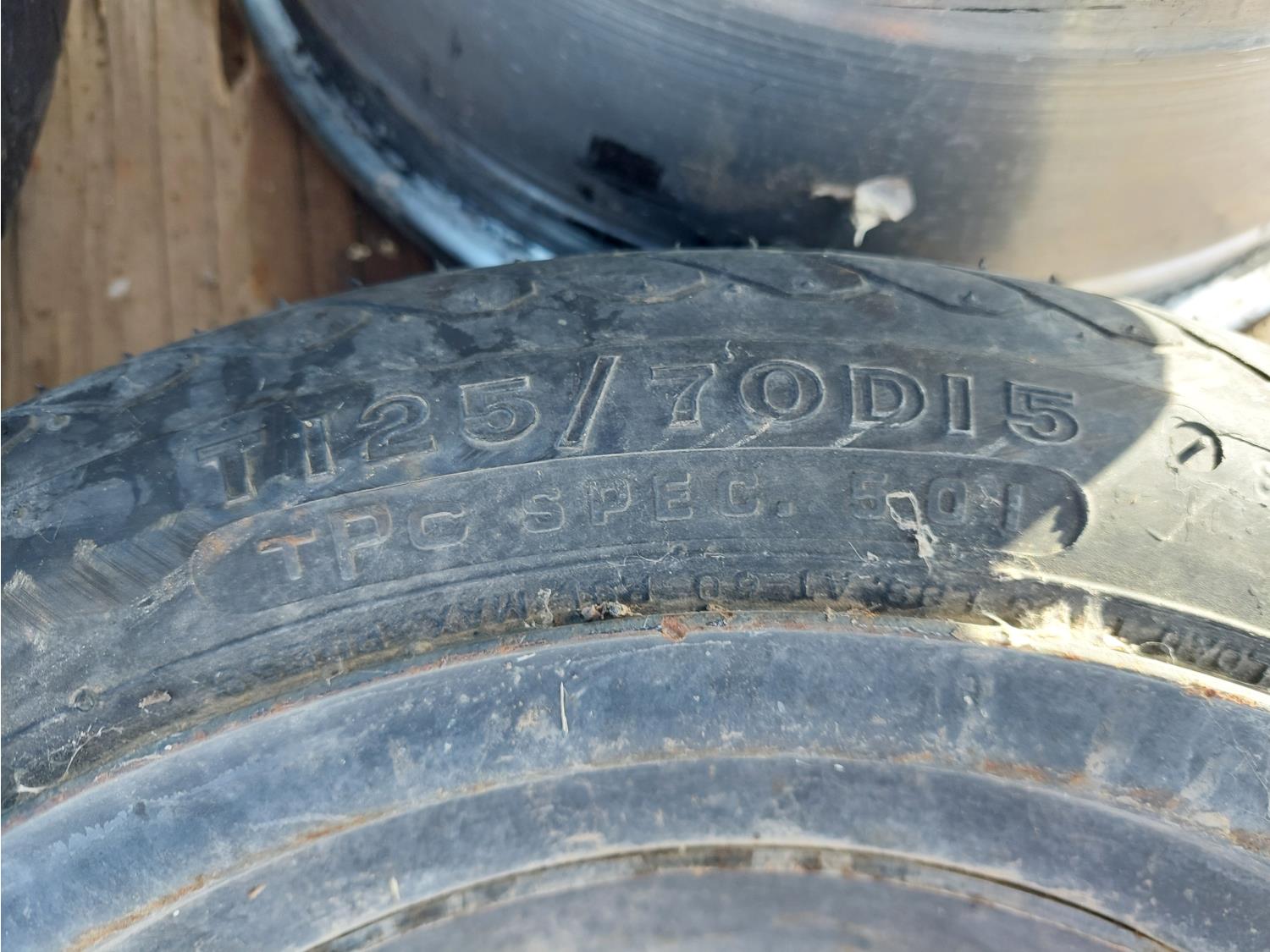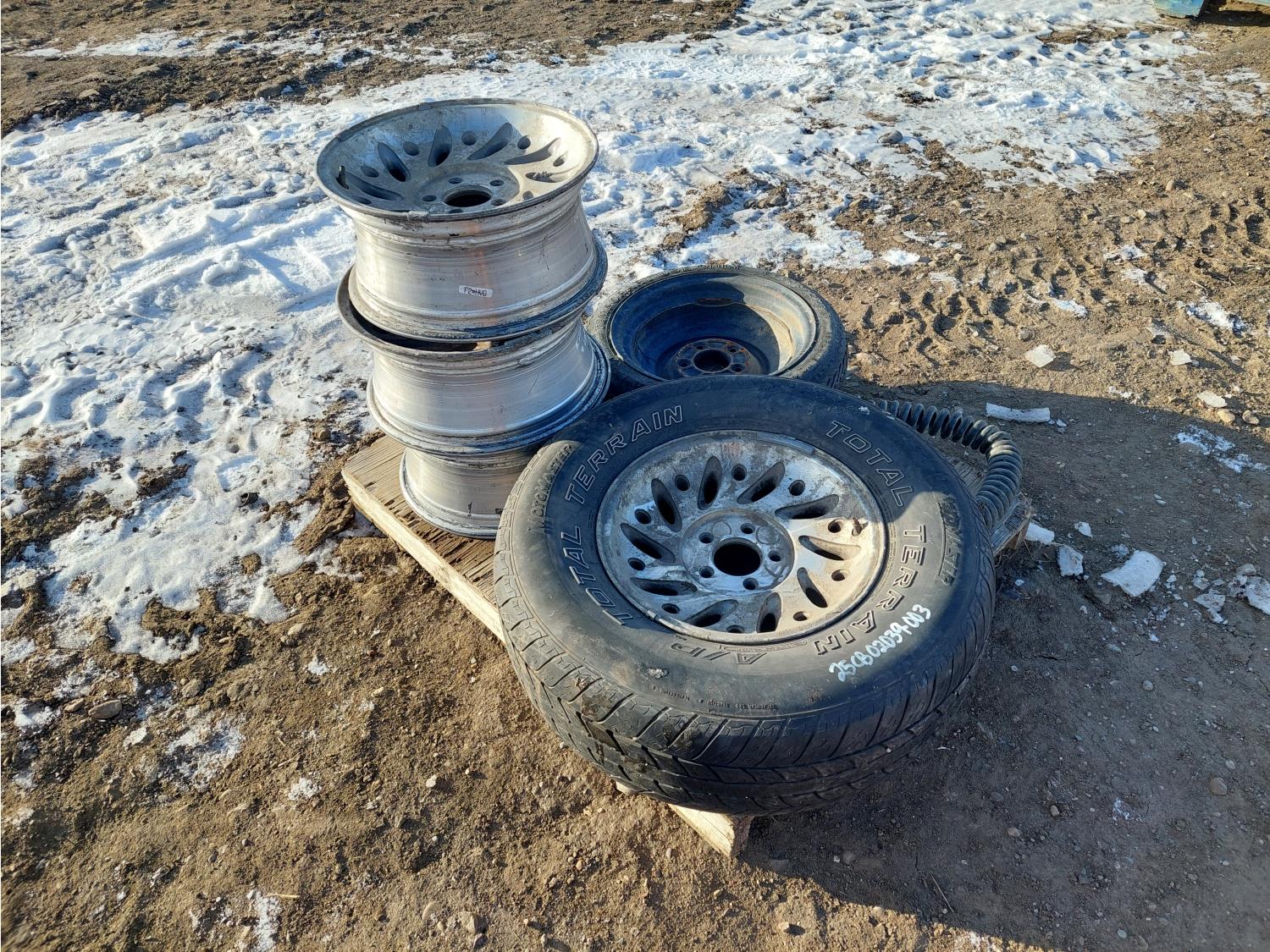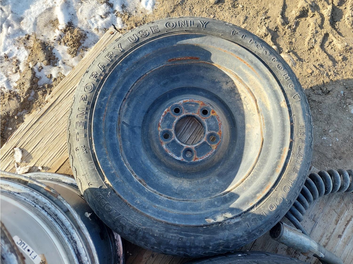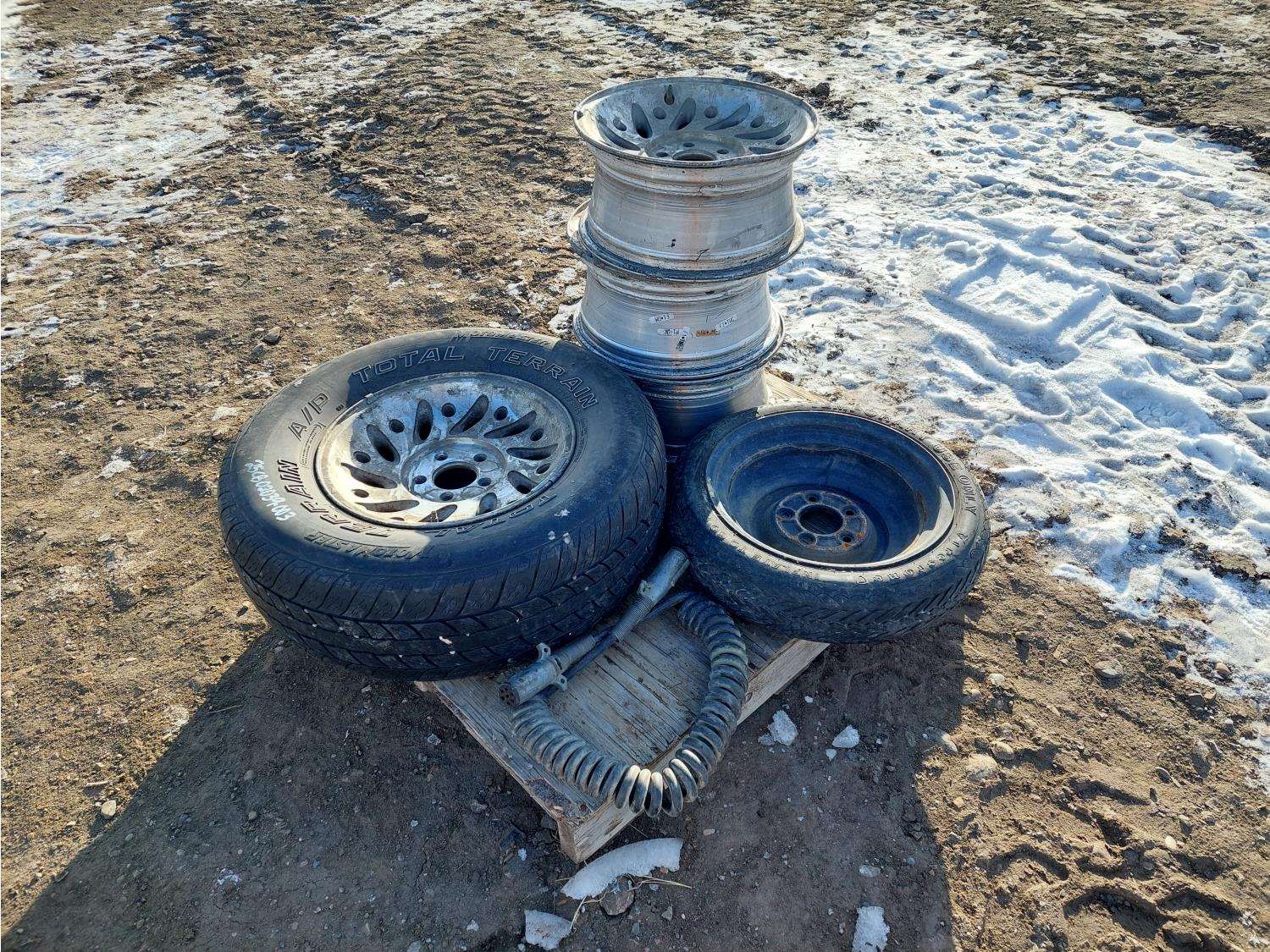 (1) 235/75R15 on rim, (1) T125/70D15 on rim, (3) rims, (1) truck tractor trailer extension cord