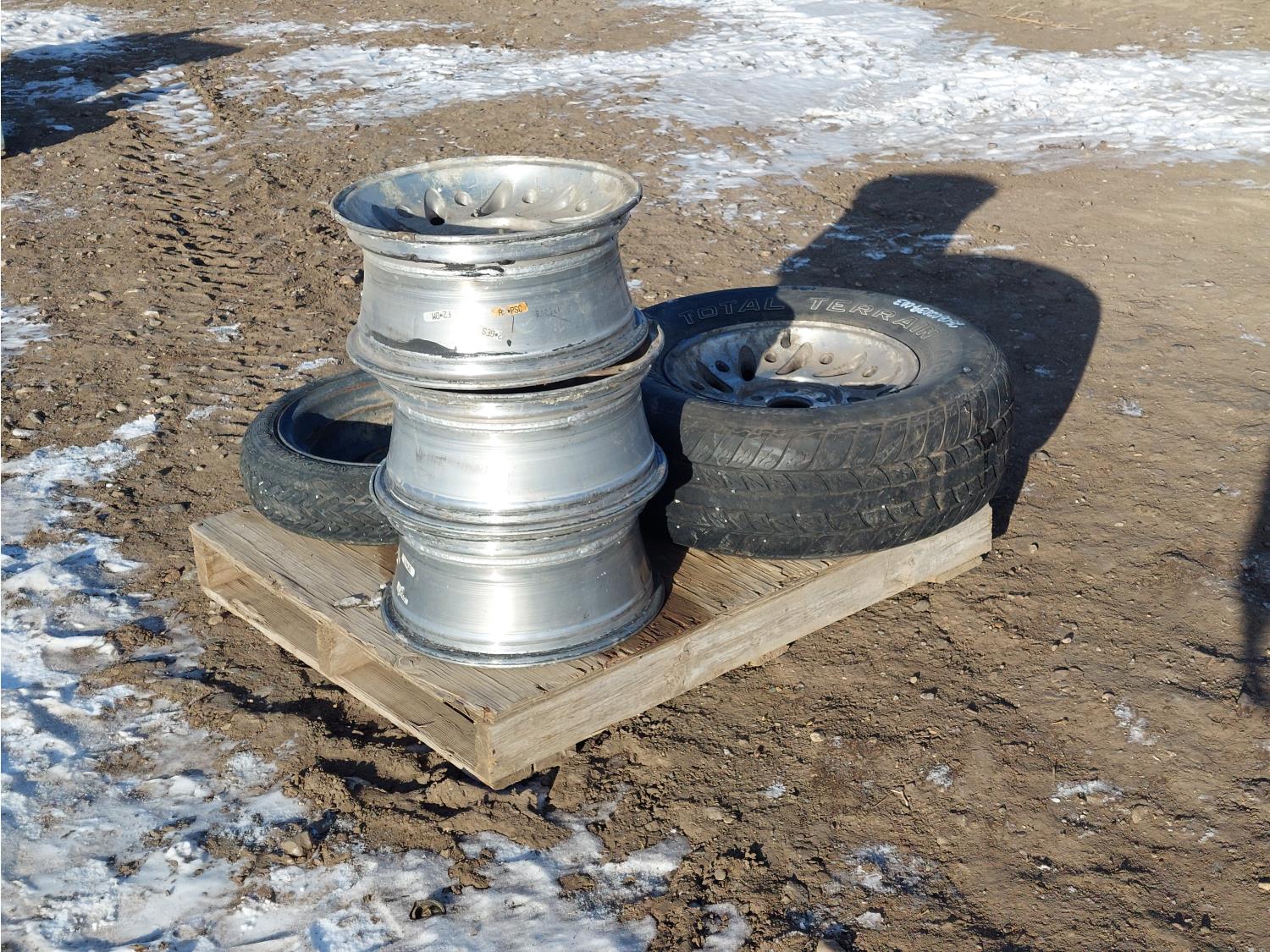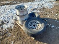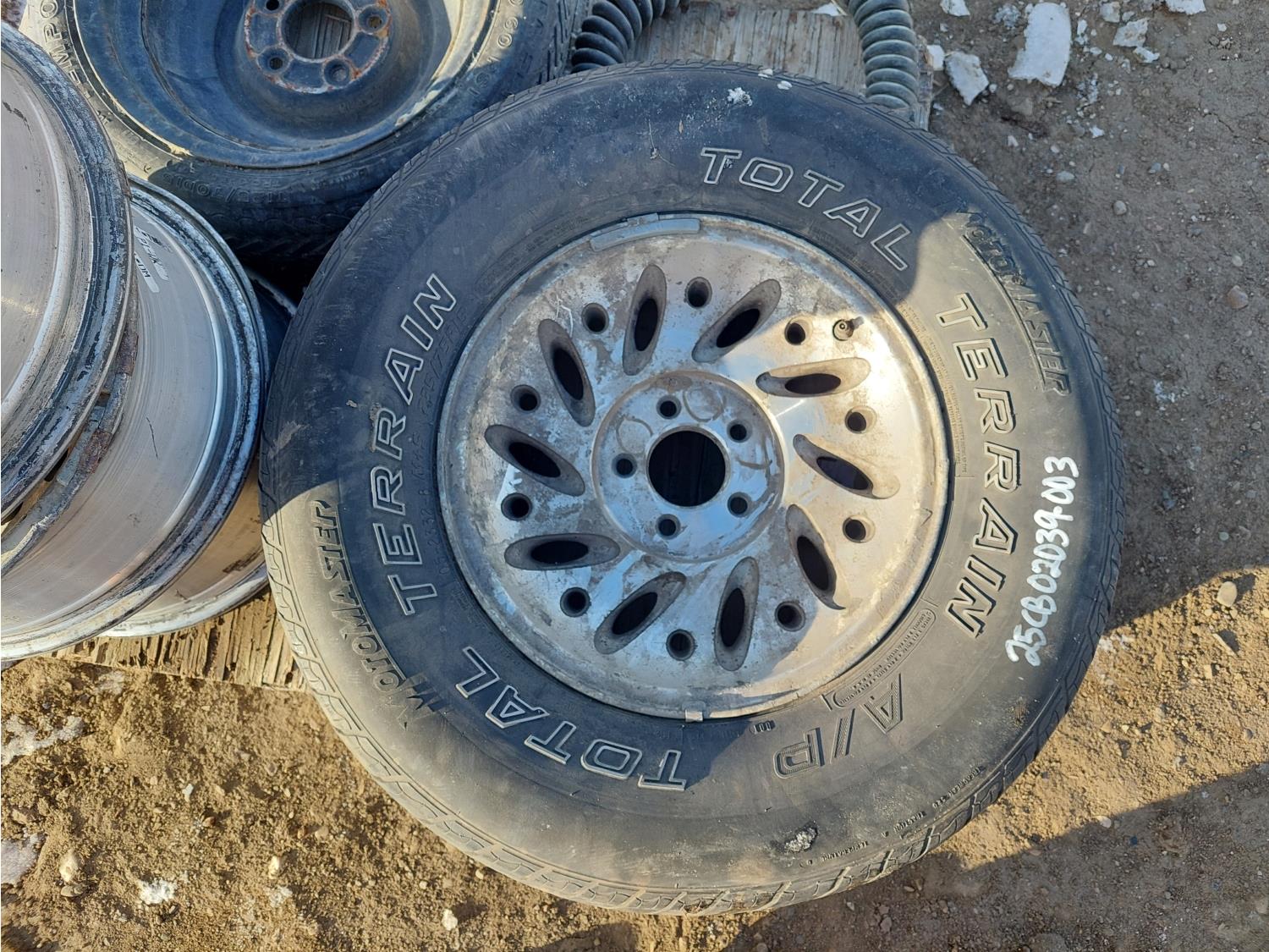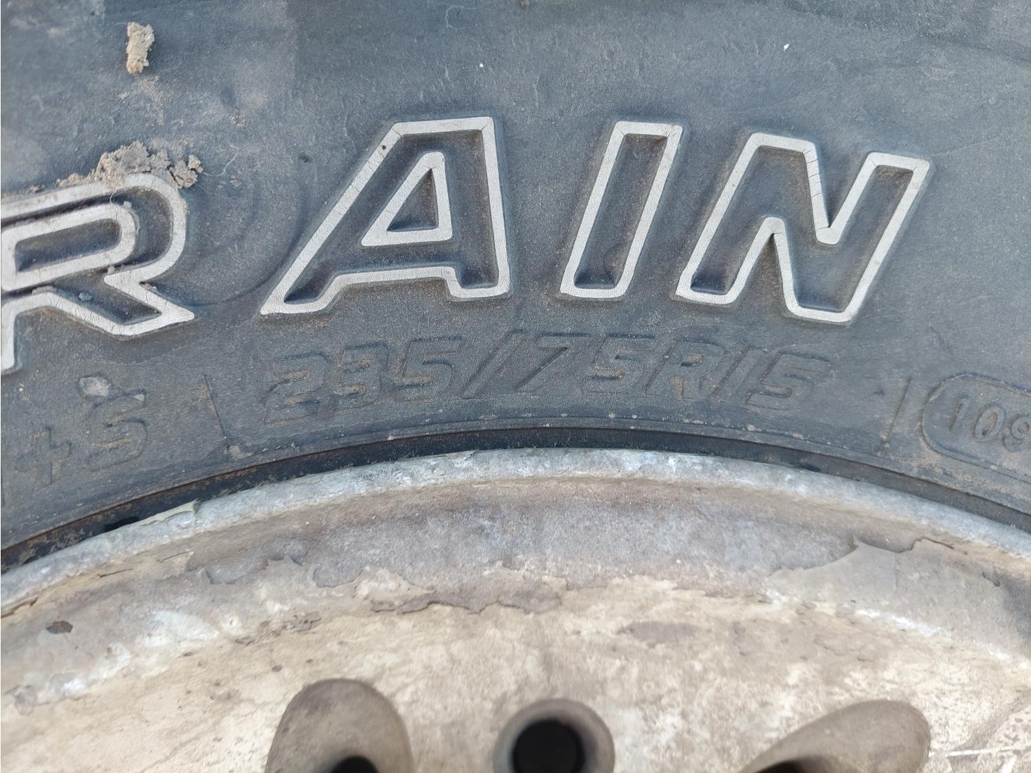 (1) 235/75R15 on rim, (1) T125/70D15 on rim, (3) rims, (1) truck tractor trailer extension cord