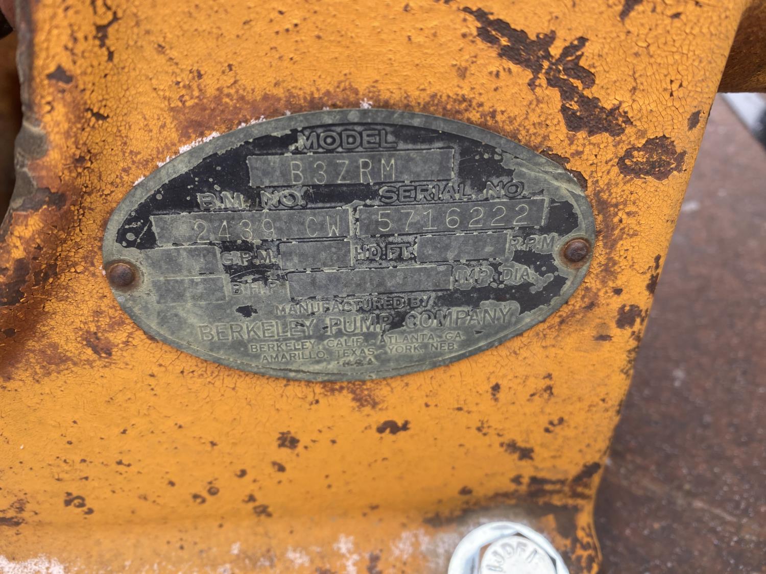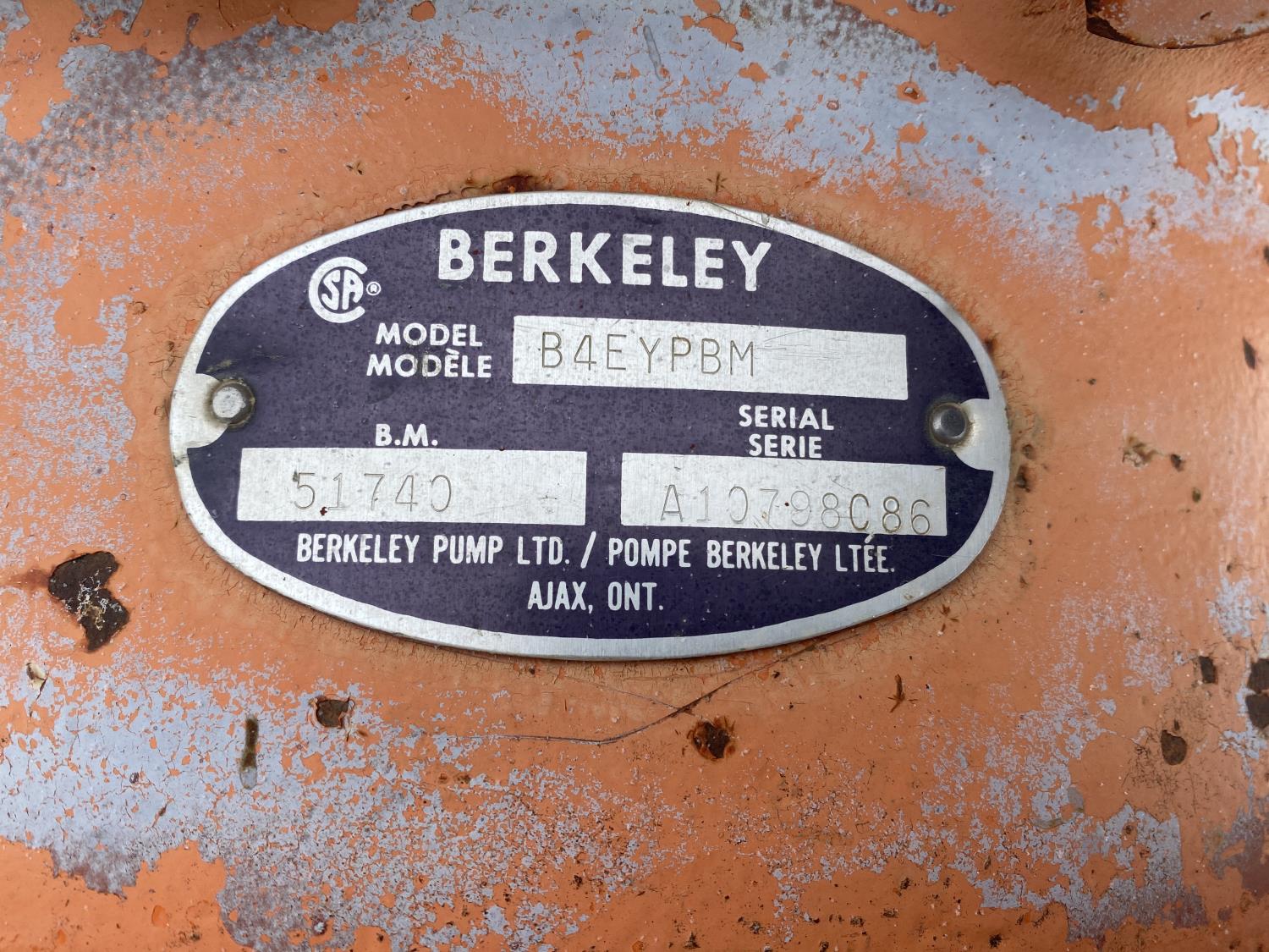 460 Volts 3 PH Emerson electric motor, Berkley B4EYPBM water pump, Berkley B3ZRM water pump