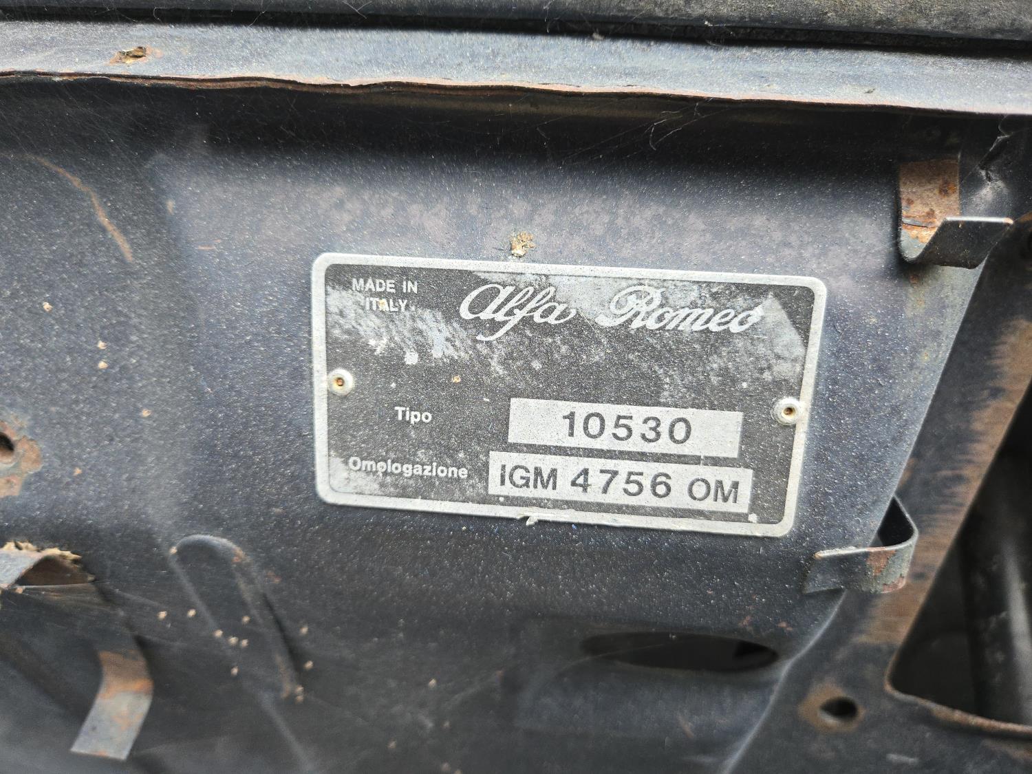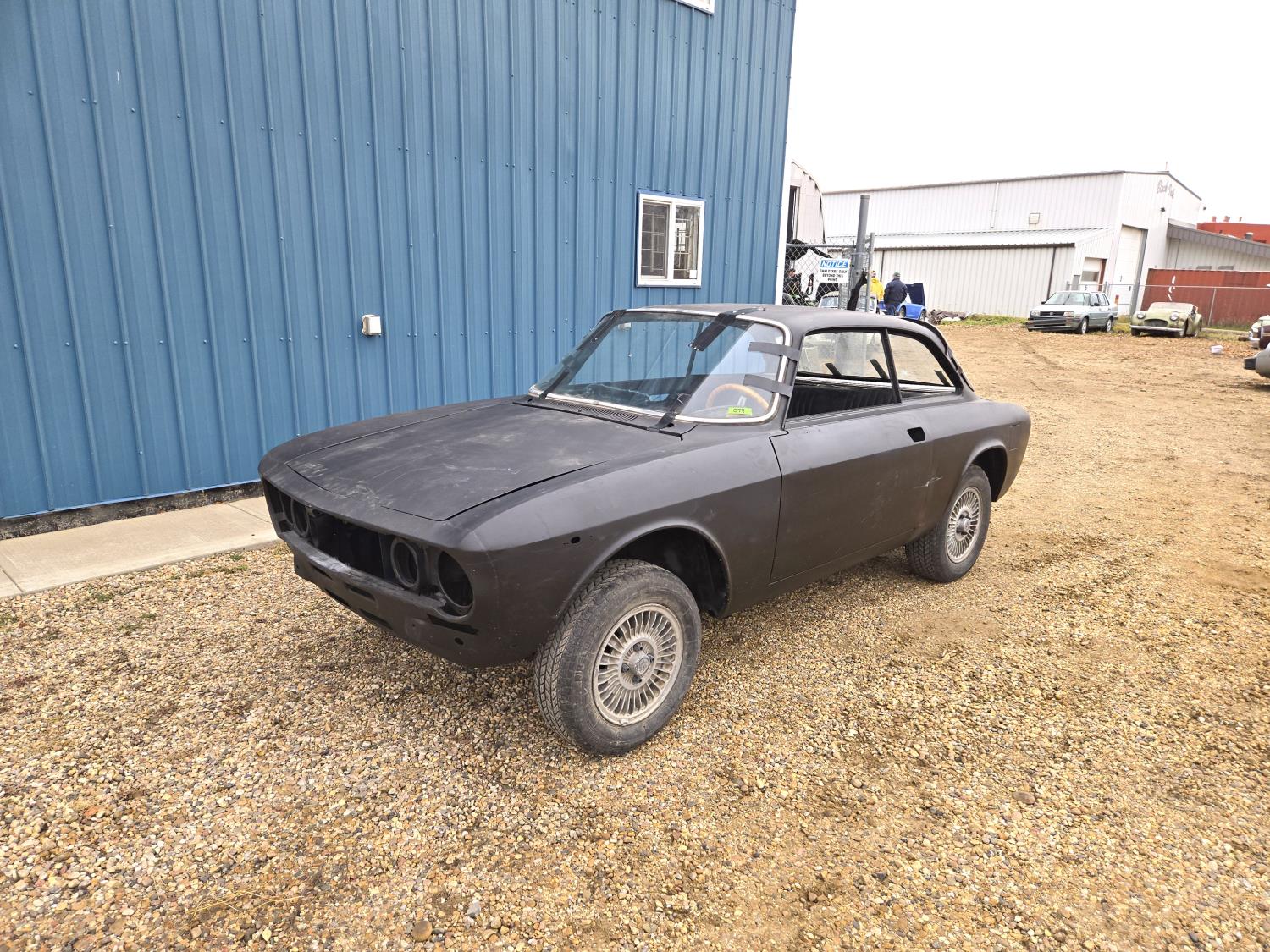 Built from GT 105 body and chassis. Additional auction lots include the complete vehicle assembly components. 2.0 L Alfa Romeo GTV motor and transmission. Rolling chassis, body, and interior. Clean glass. Lights, 185/70R14 tires