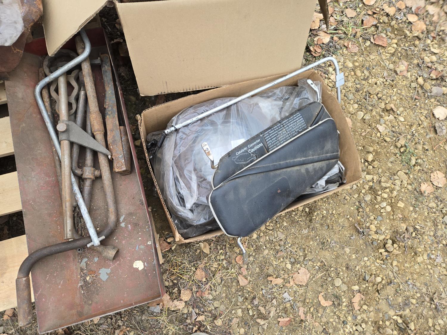 emblems, Chev rad, Austin valve cover, miscellaneous parts and tools