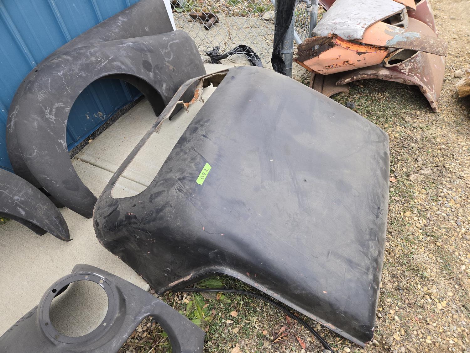 Front and rear fenders, fiberglass top, front grill, inner fenders, doors, hood