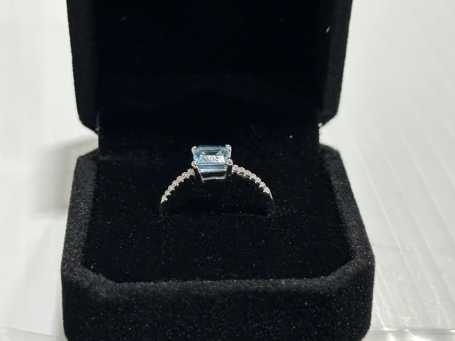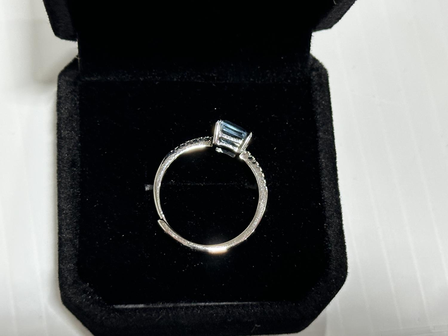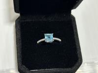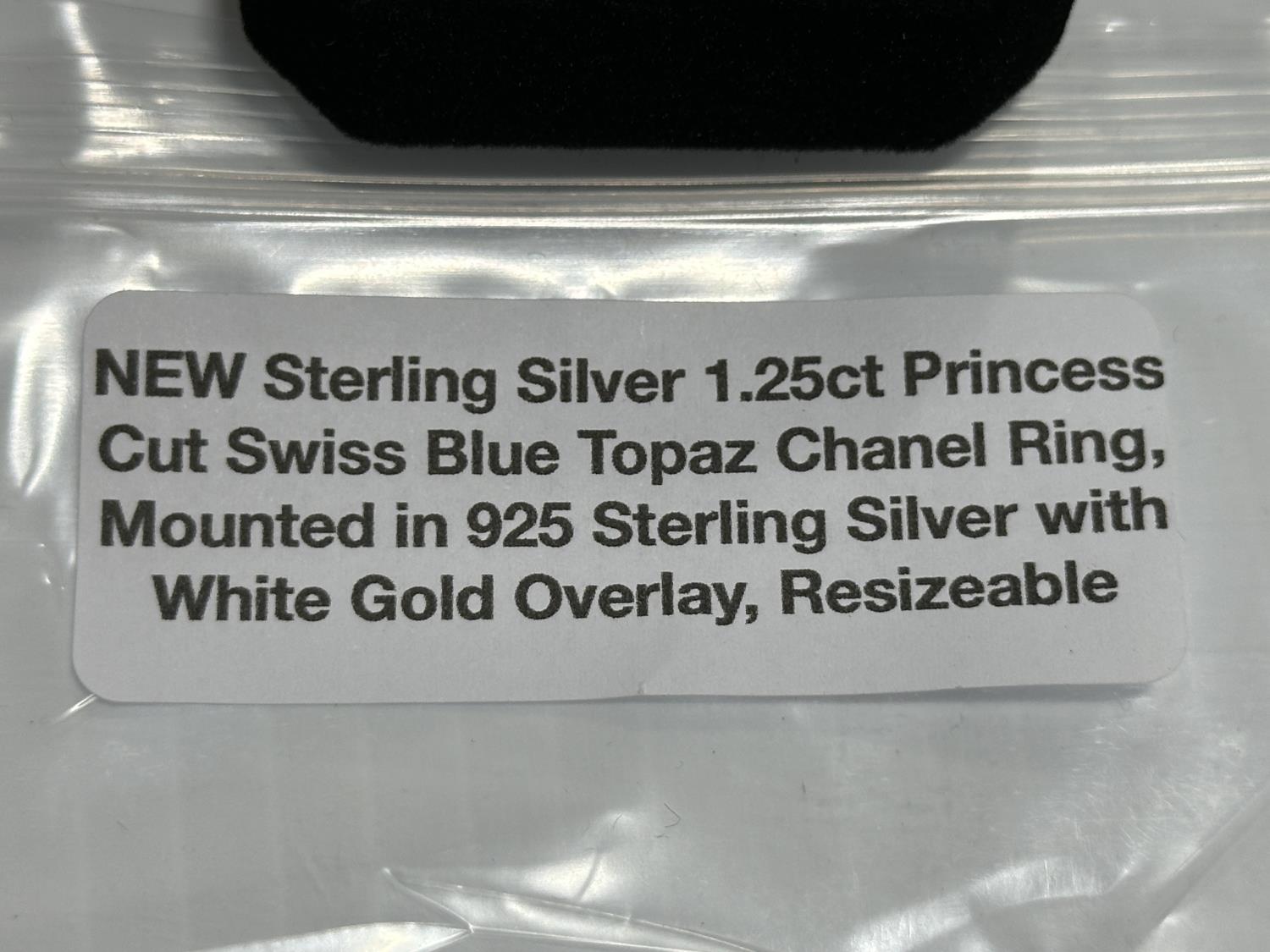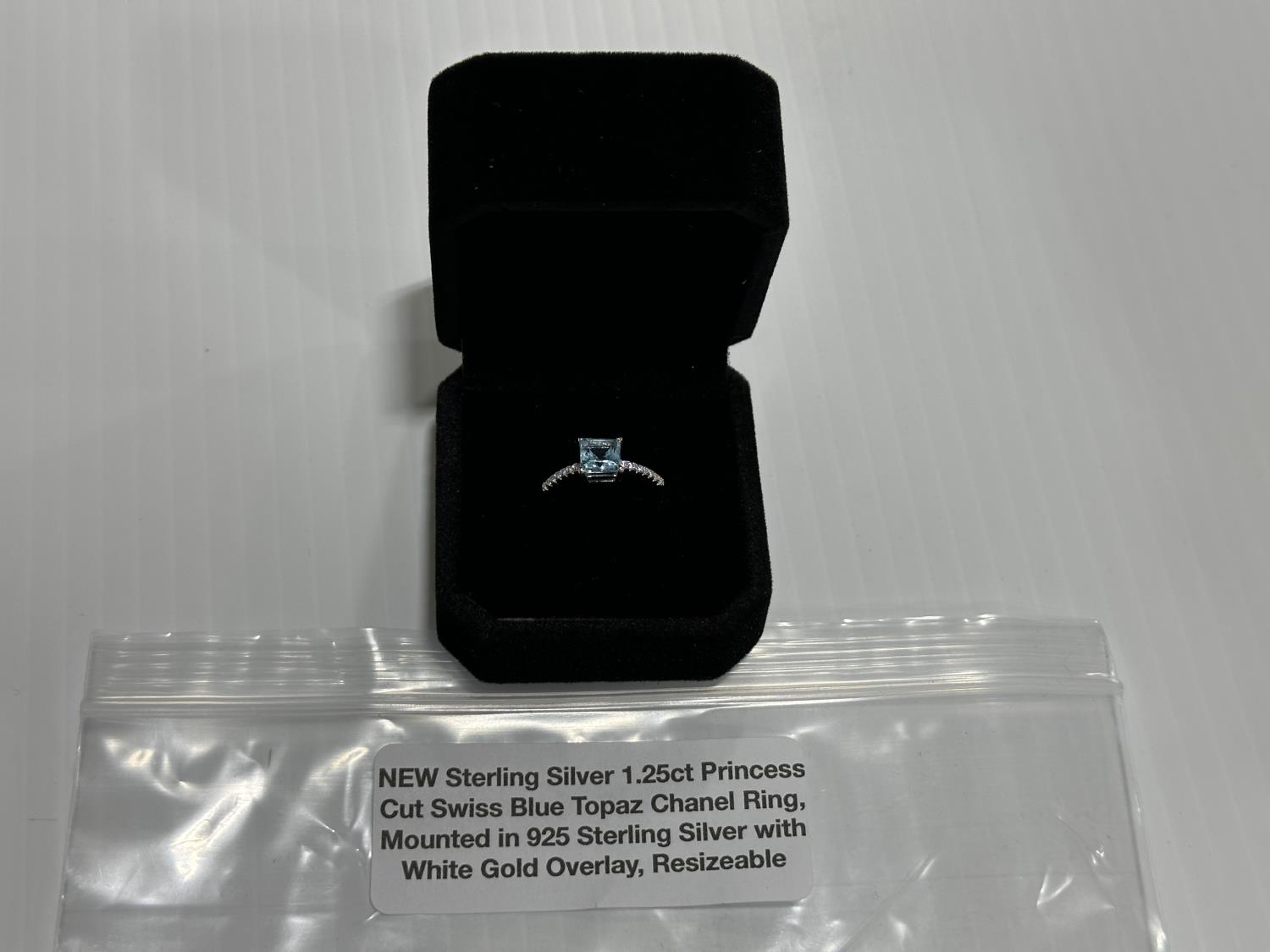 5339 1.25Ct Princess Cut Swiss Blue Topaz Chanel Ring, Resizable (Unused)