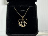 5344 14K Gold Plated Triple Heart Necklace 17 Inch Long Chain (Unused)