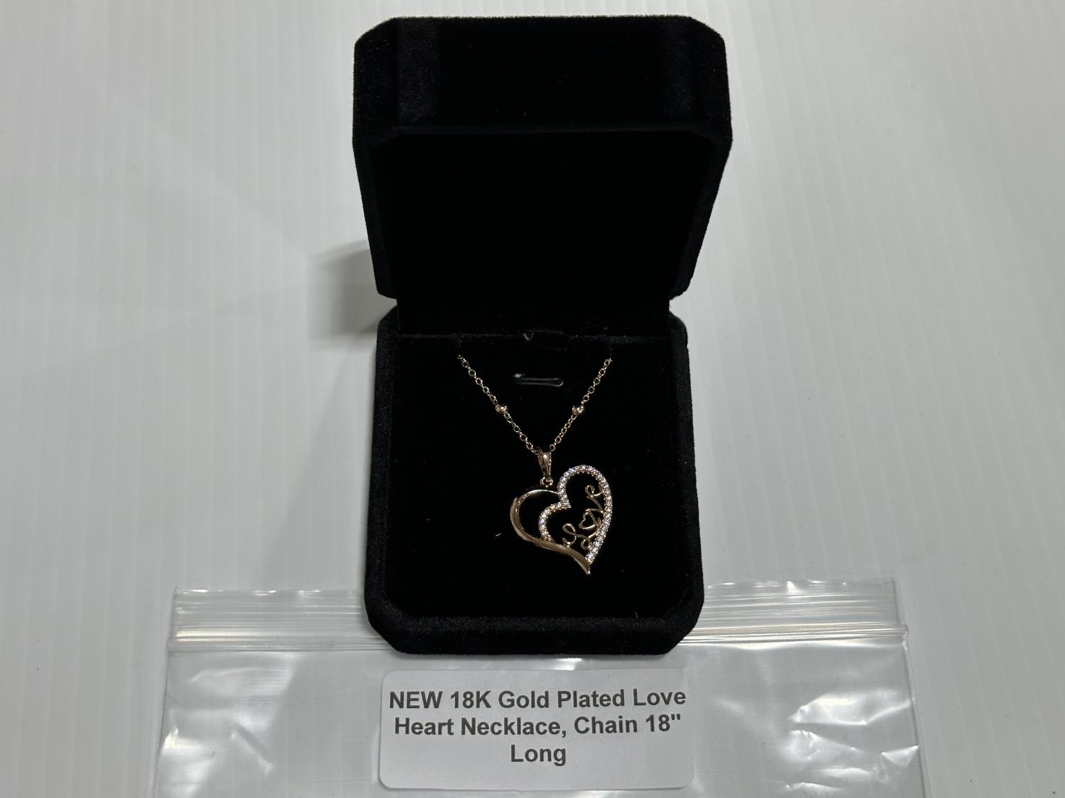 5345 18K Gold Plated Love Heart Necklace 18 Inch Long Chain (Unused)