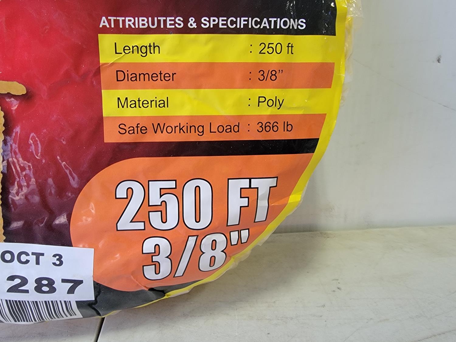 5377 250 Ft 3/8 Inch Yellow Poly Rope (Unused)