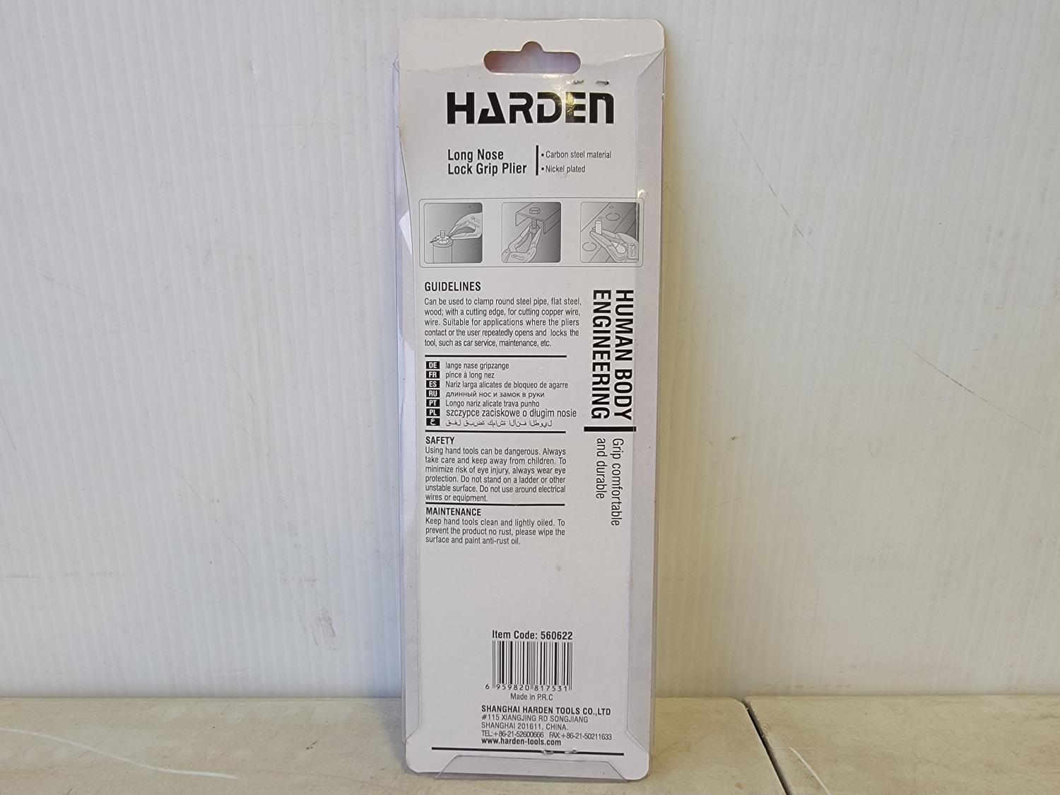 5475 Harden Long Nose Lock Grip Pliers and 9 Piece 6 mm Steel Number Stamps (Unused)
