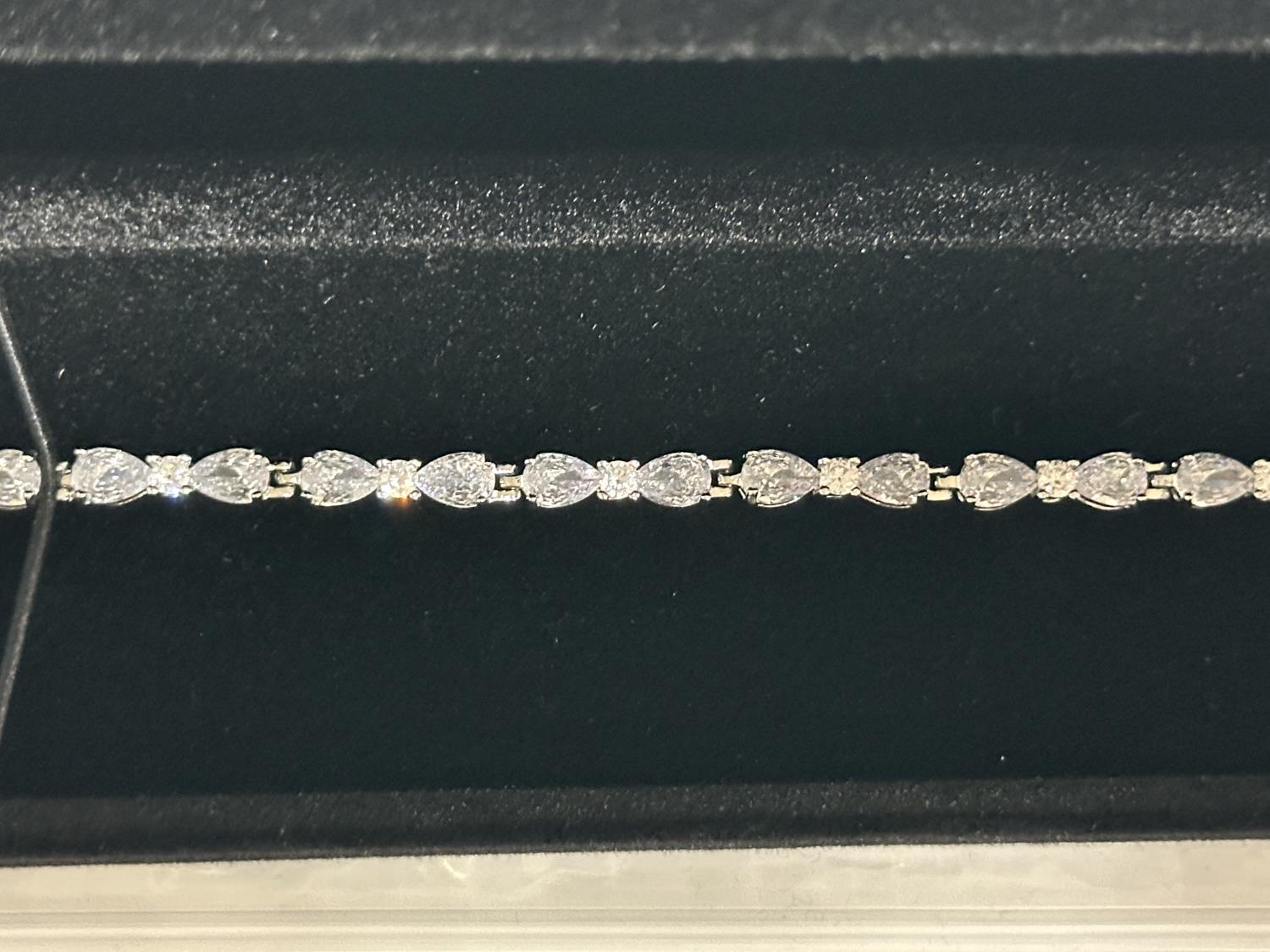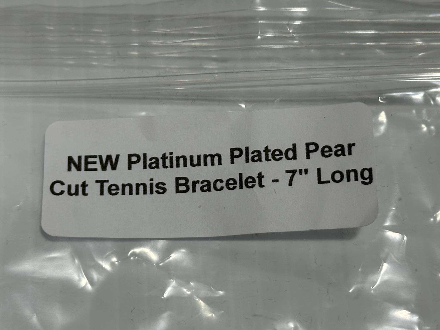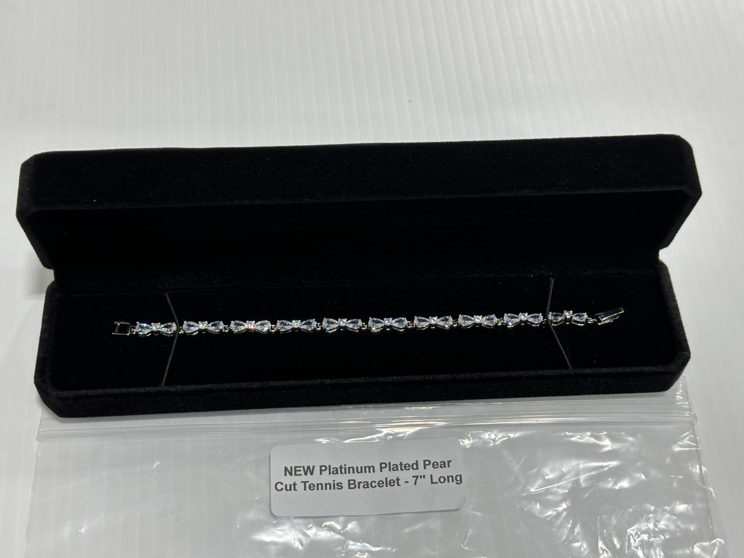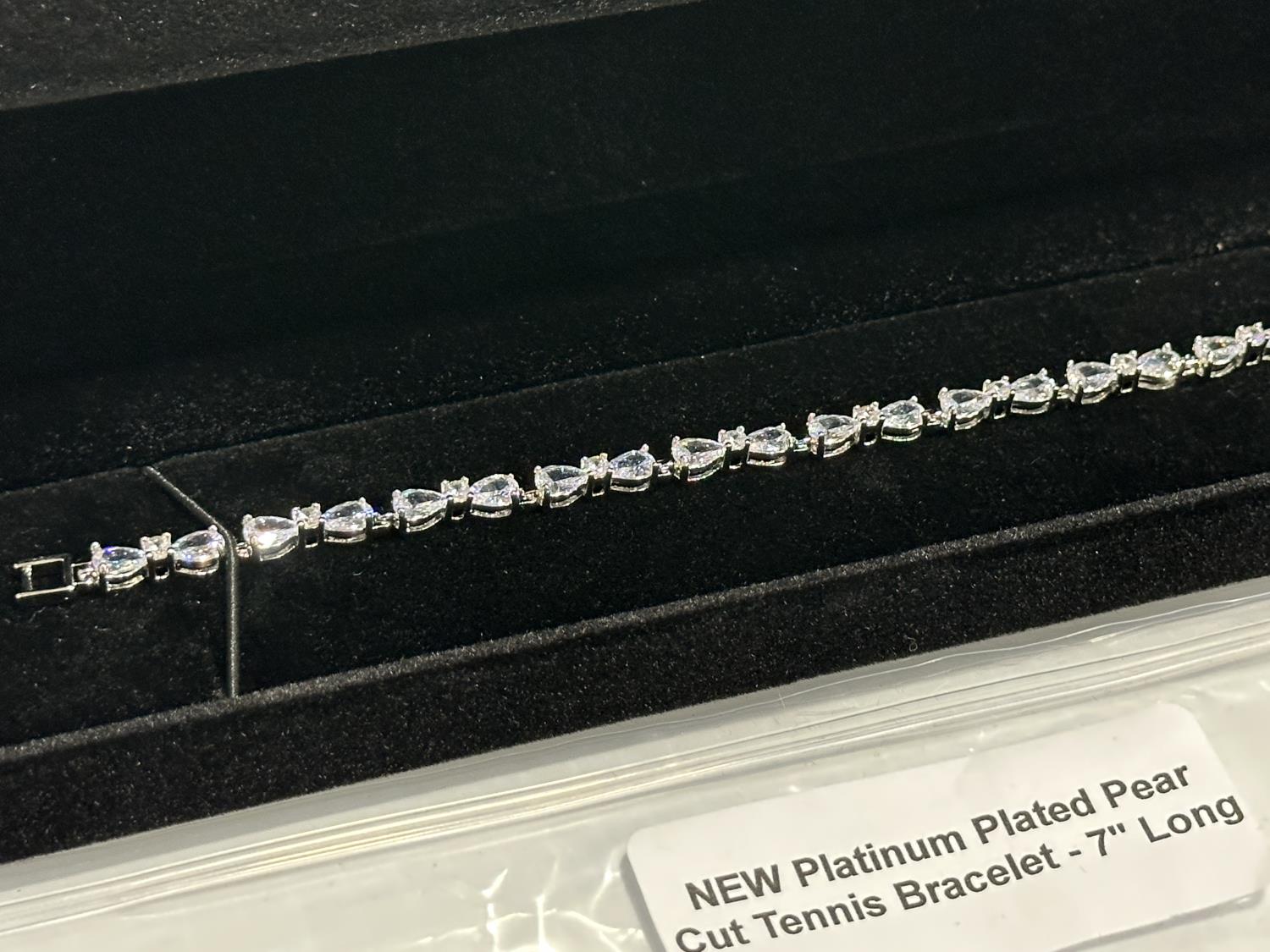 5346 Platinum Plated Pear Cut Tennis Bracelet - 7 Inch Long (Unused)