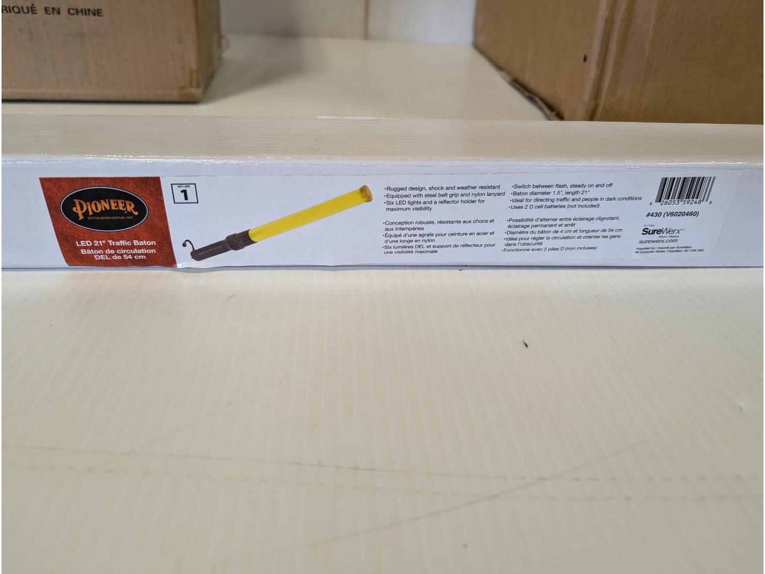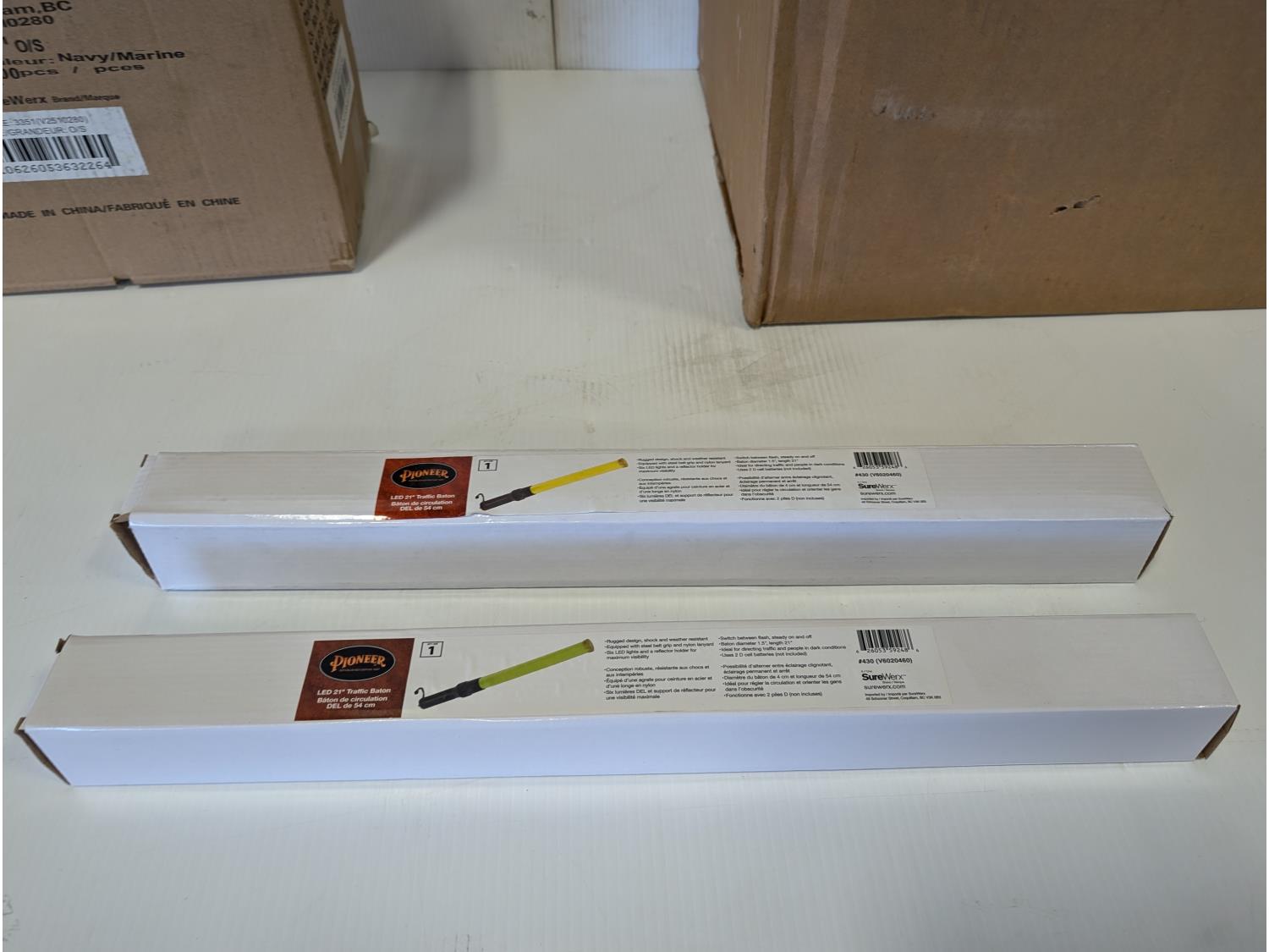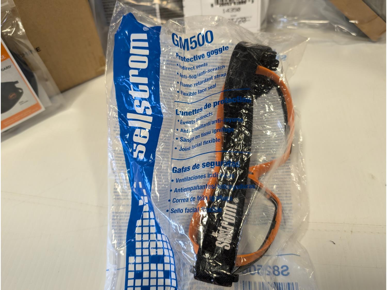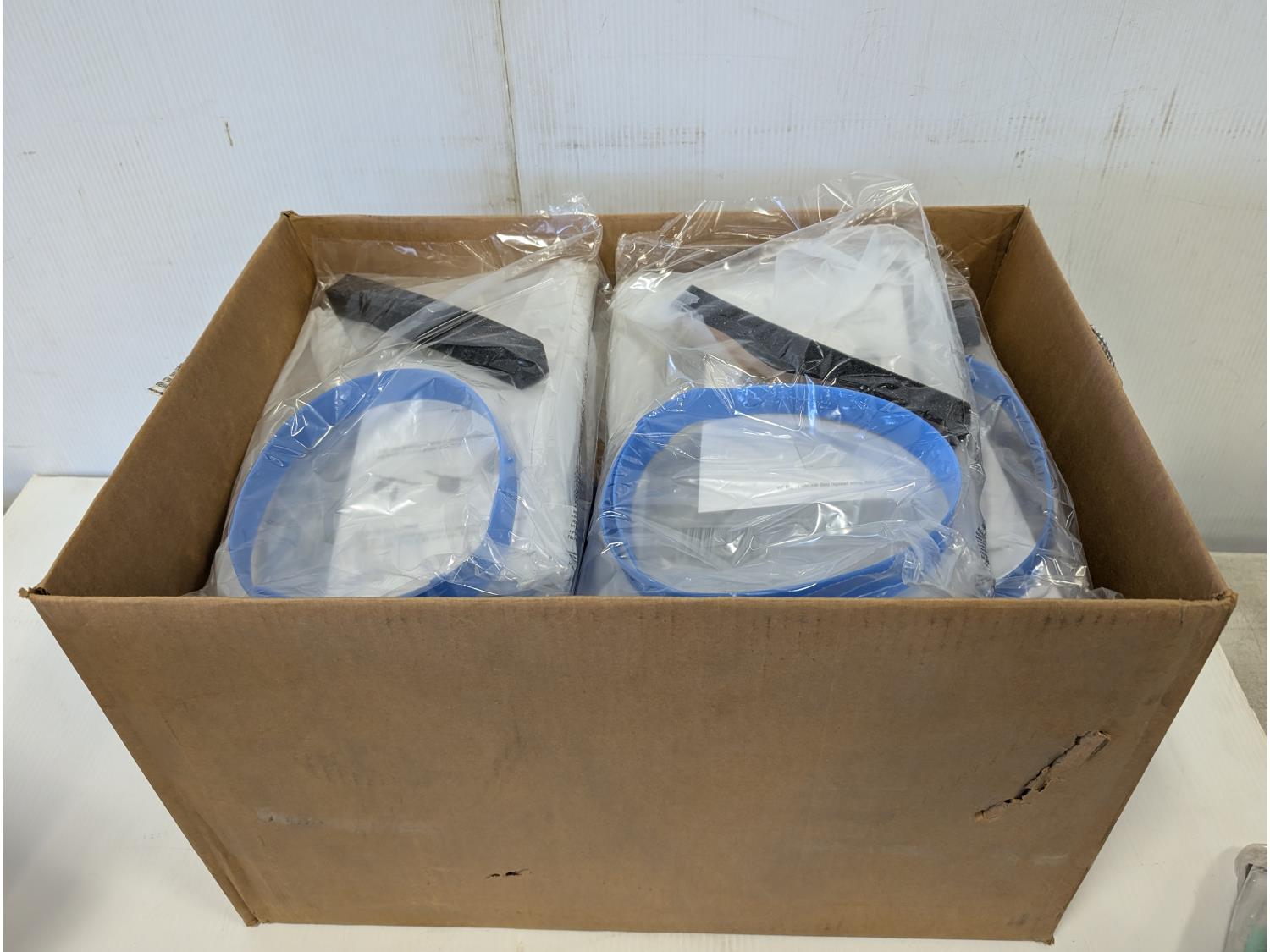 qty of face masks, splash protection face shield assemblies, Sellstrom protective googles, jackson clear lens kits, (2) 21 inch LED traffic batons