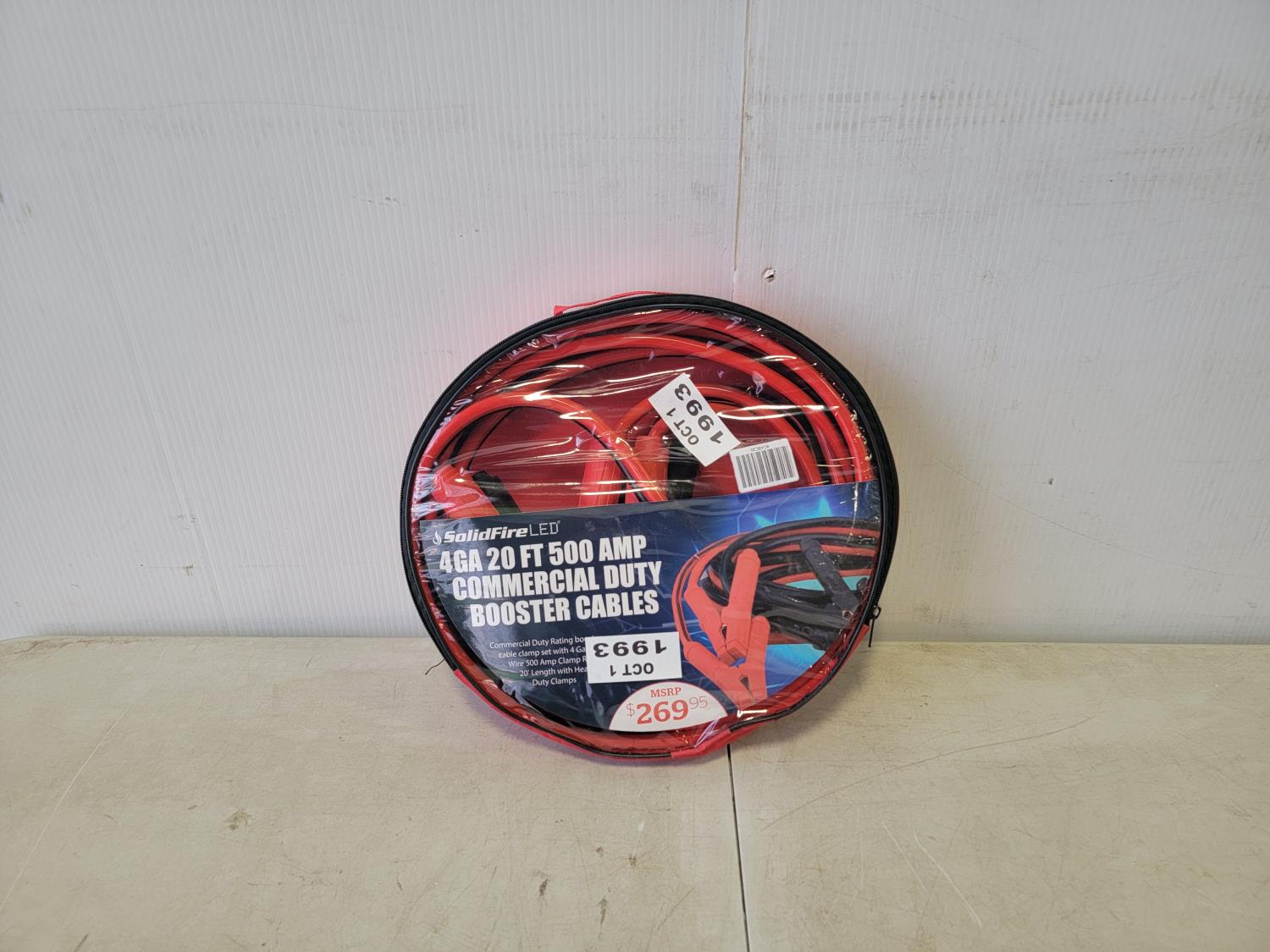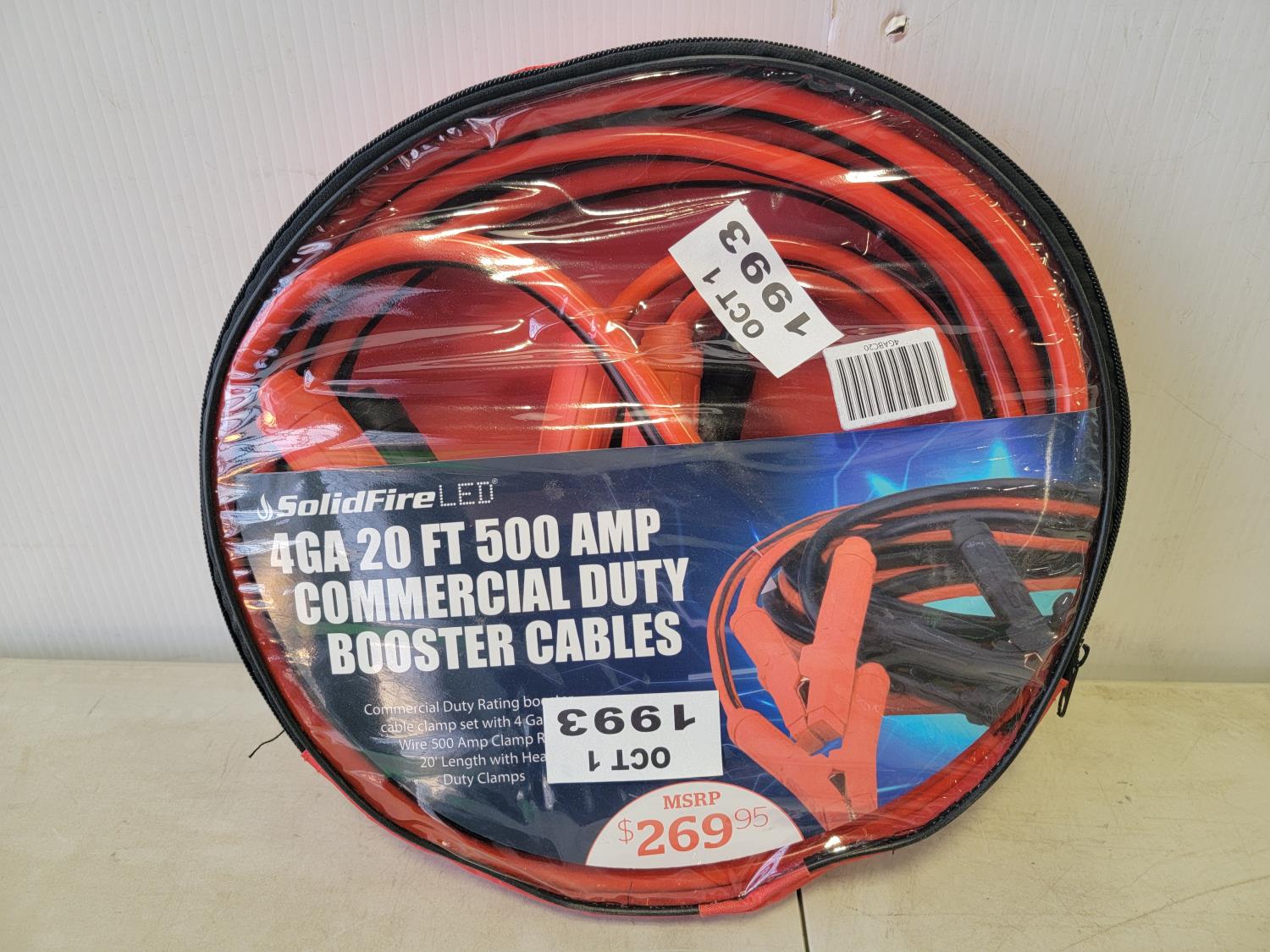 5375 Solidfire LED 4 Ga 20 Ft 500 Amp Commercial Duty Booster Cables (Unused)