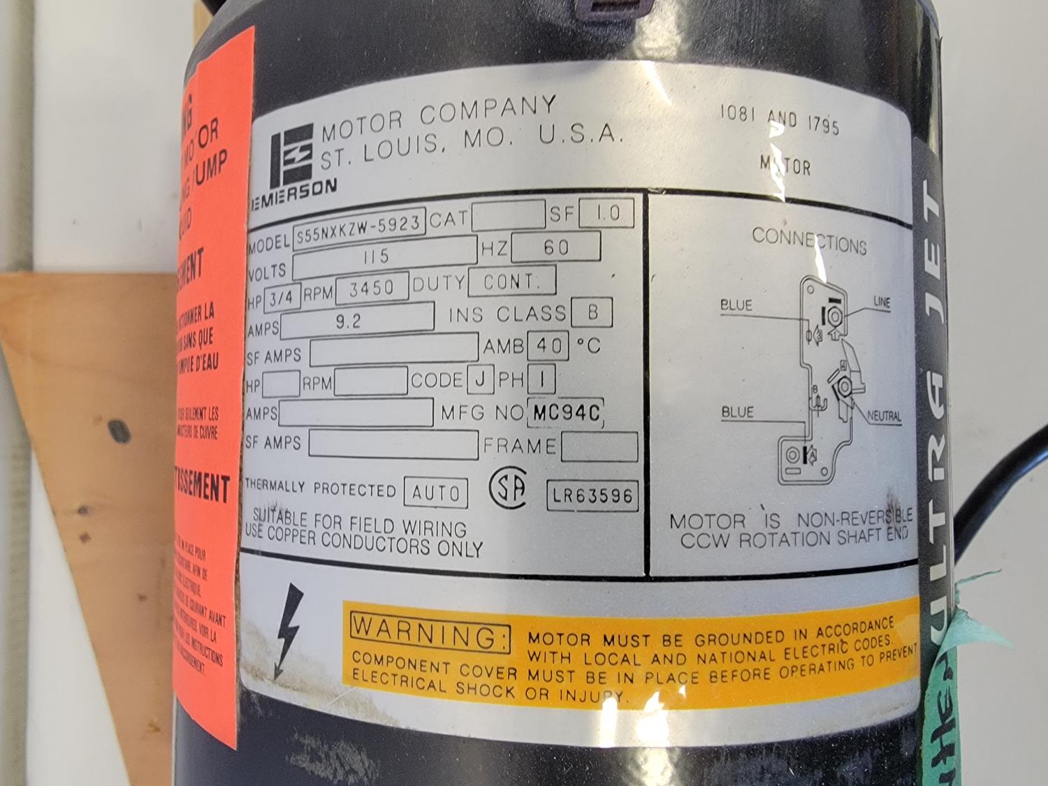 5420 (1) Sump Pump and (1) 3/4 HP 115V Jacuzzi Pump