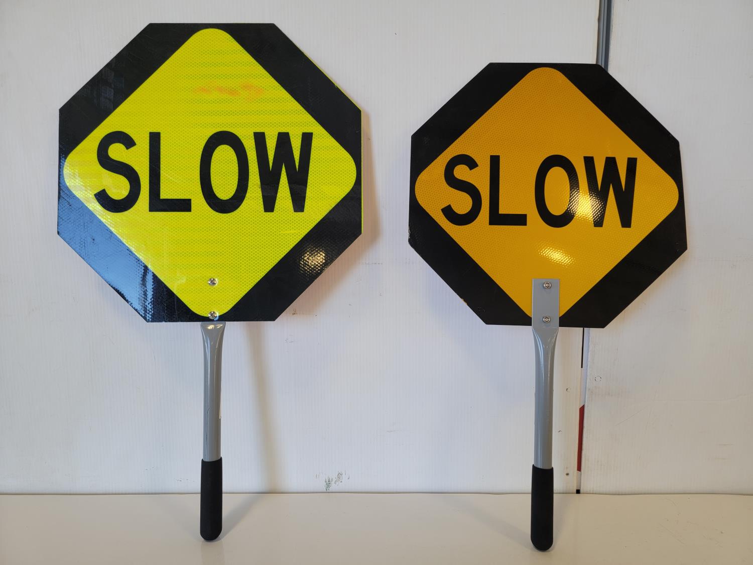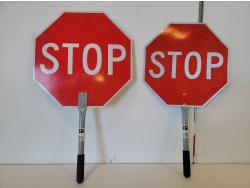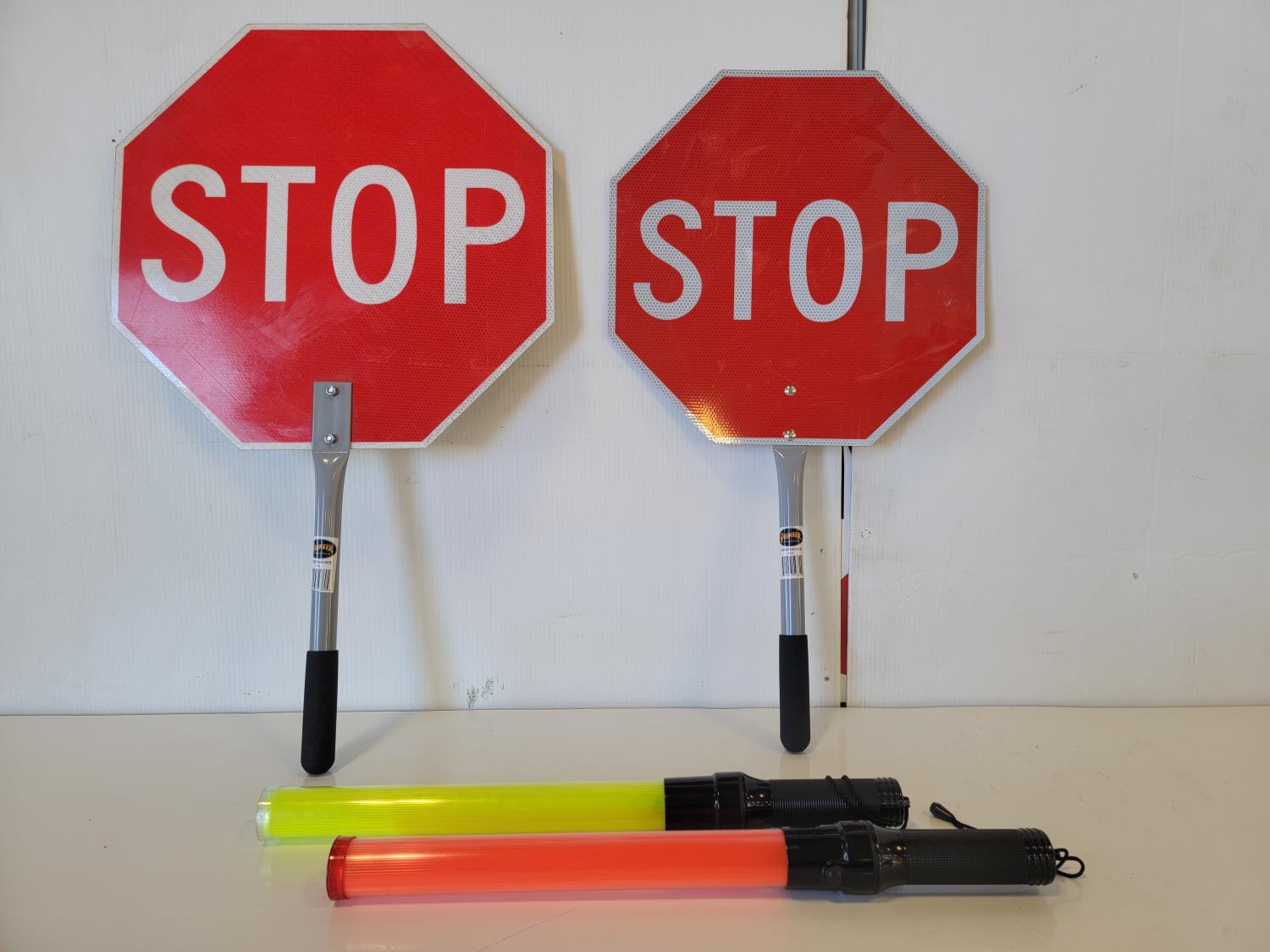 5030 (2) Stop/Slow Hand-Held Traffic Paddles and (2) Safety Wands (Unused)