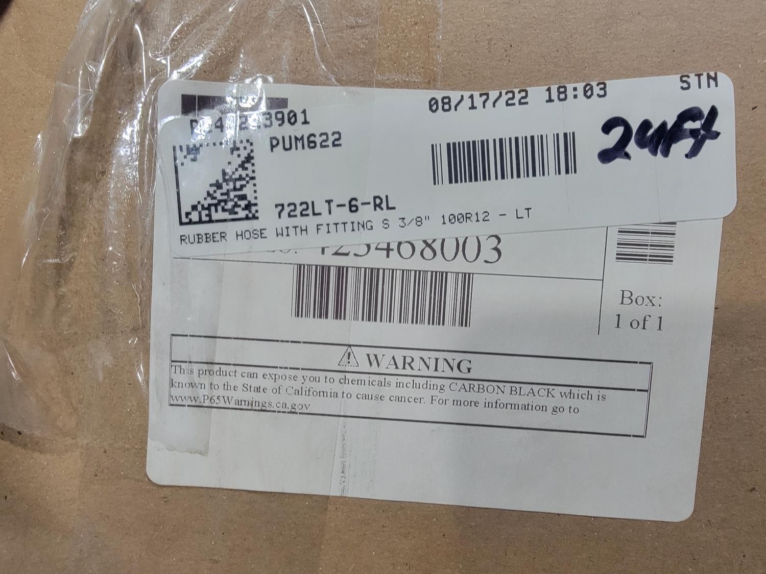 5416 24 Ft 3/8 Inch 4000 PSI Hydraulic Hose (Unused)