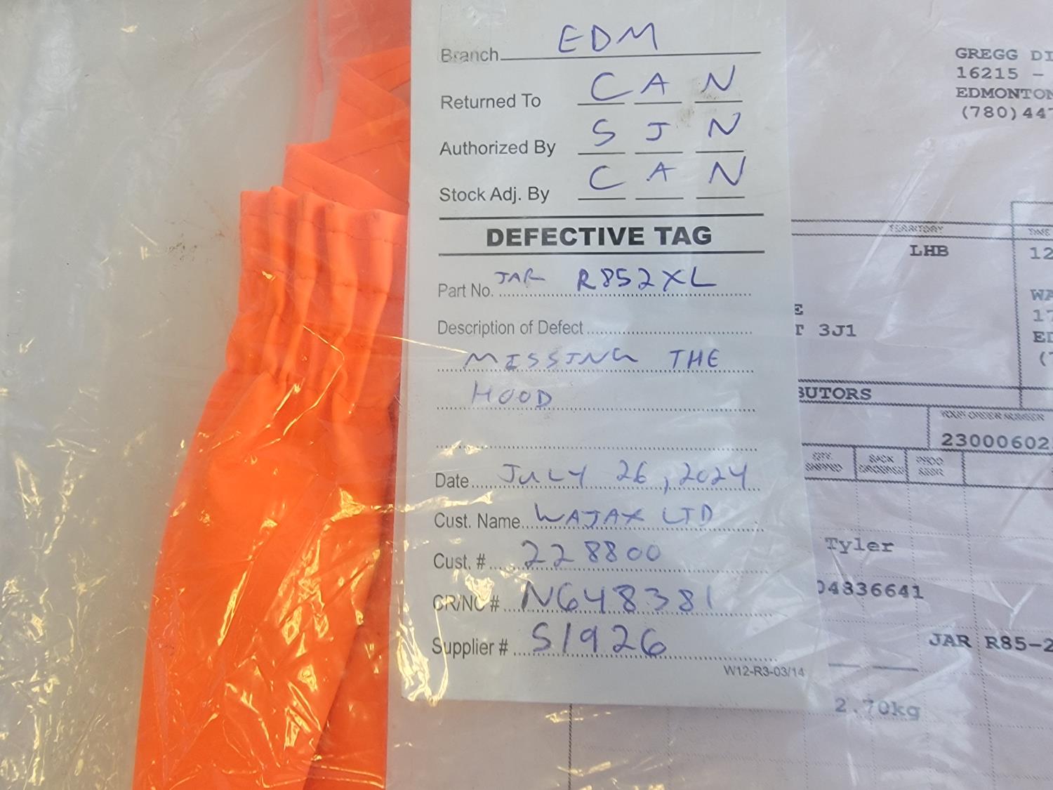 Rain coat is missing hood