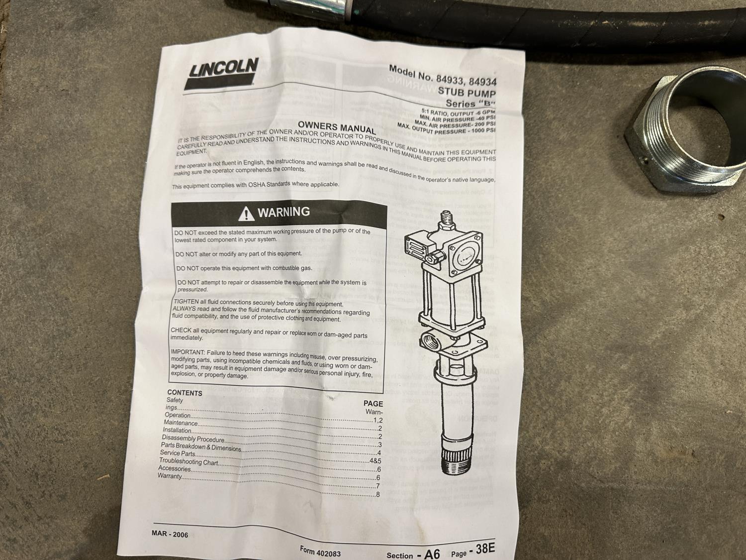 5529 Lincoln 84934 Pneumatic Lube Pump (Unused)