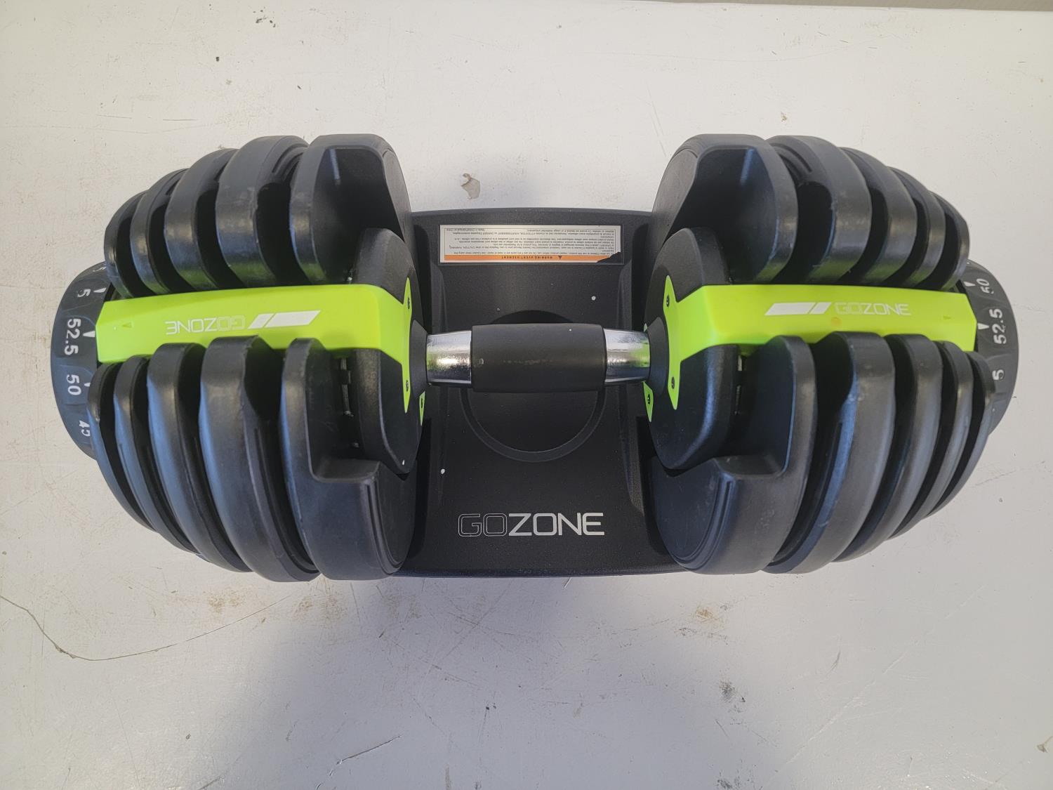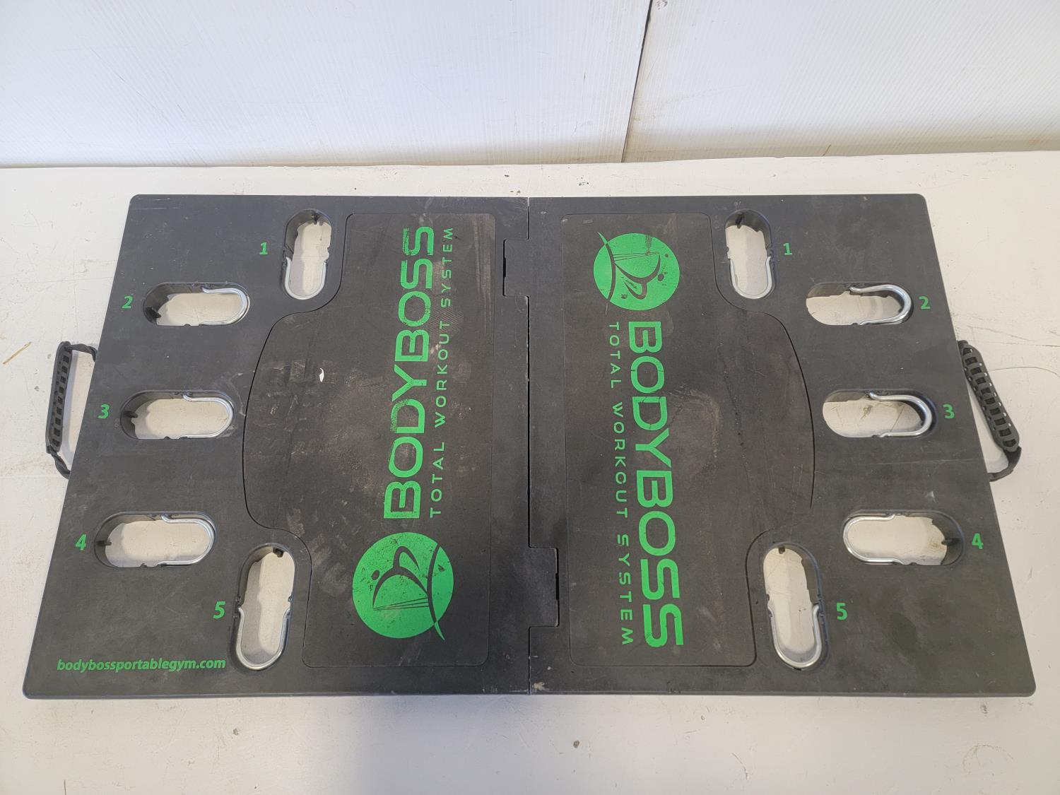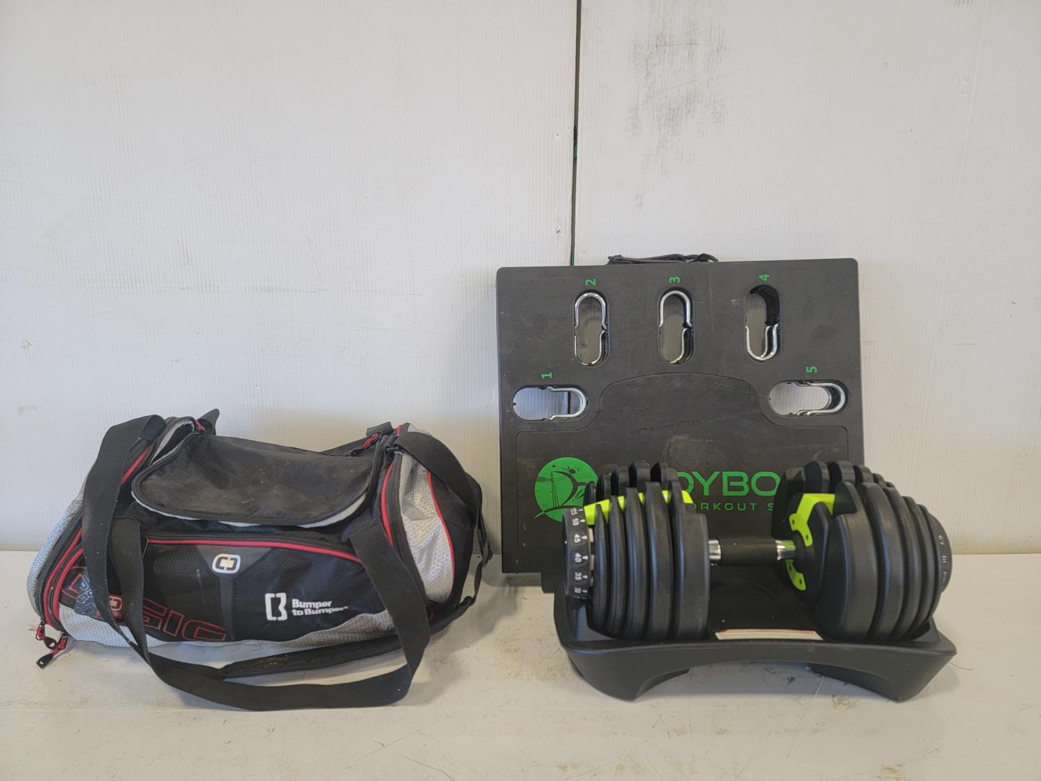 (1) 50 lb adjustable dumbbell, (1) bodyboss total workout system with accessories