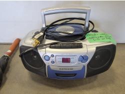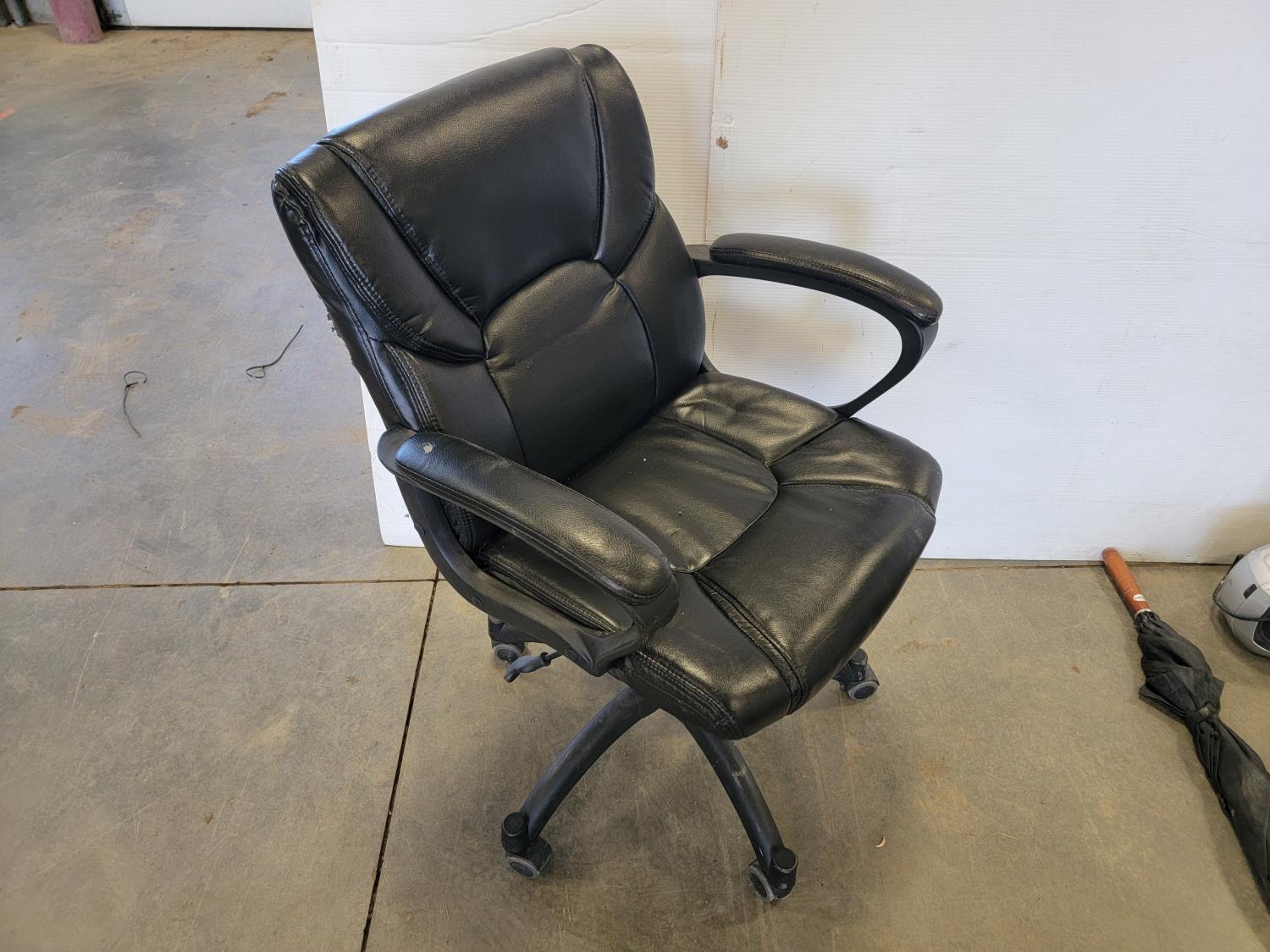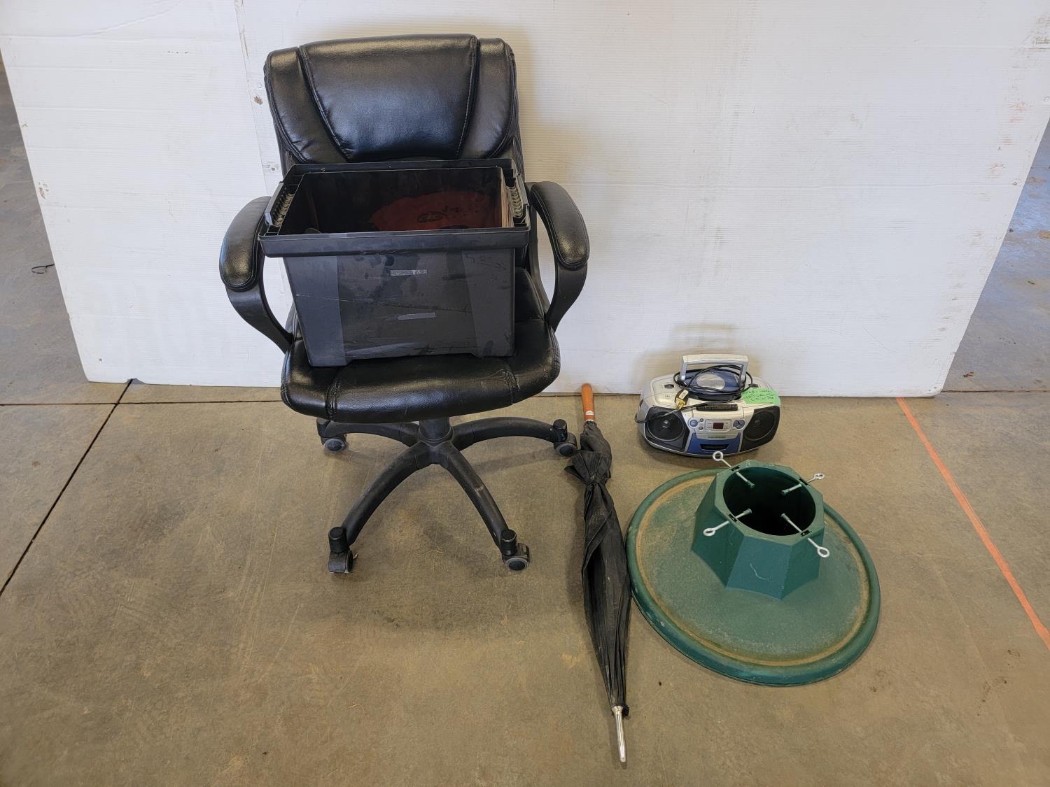Christmas tree stand, office chair, radio and umbrella