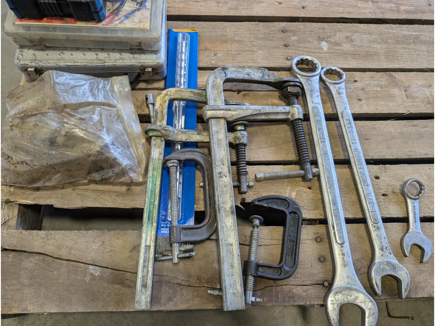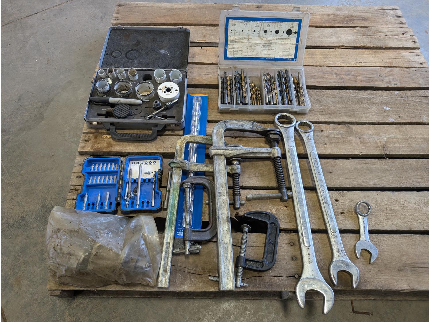 Combination wrenches, bessey clamps, drill bits, hole saws