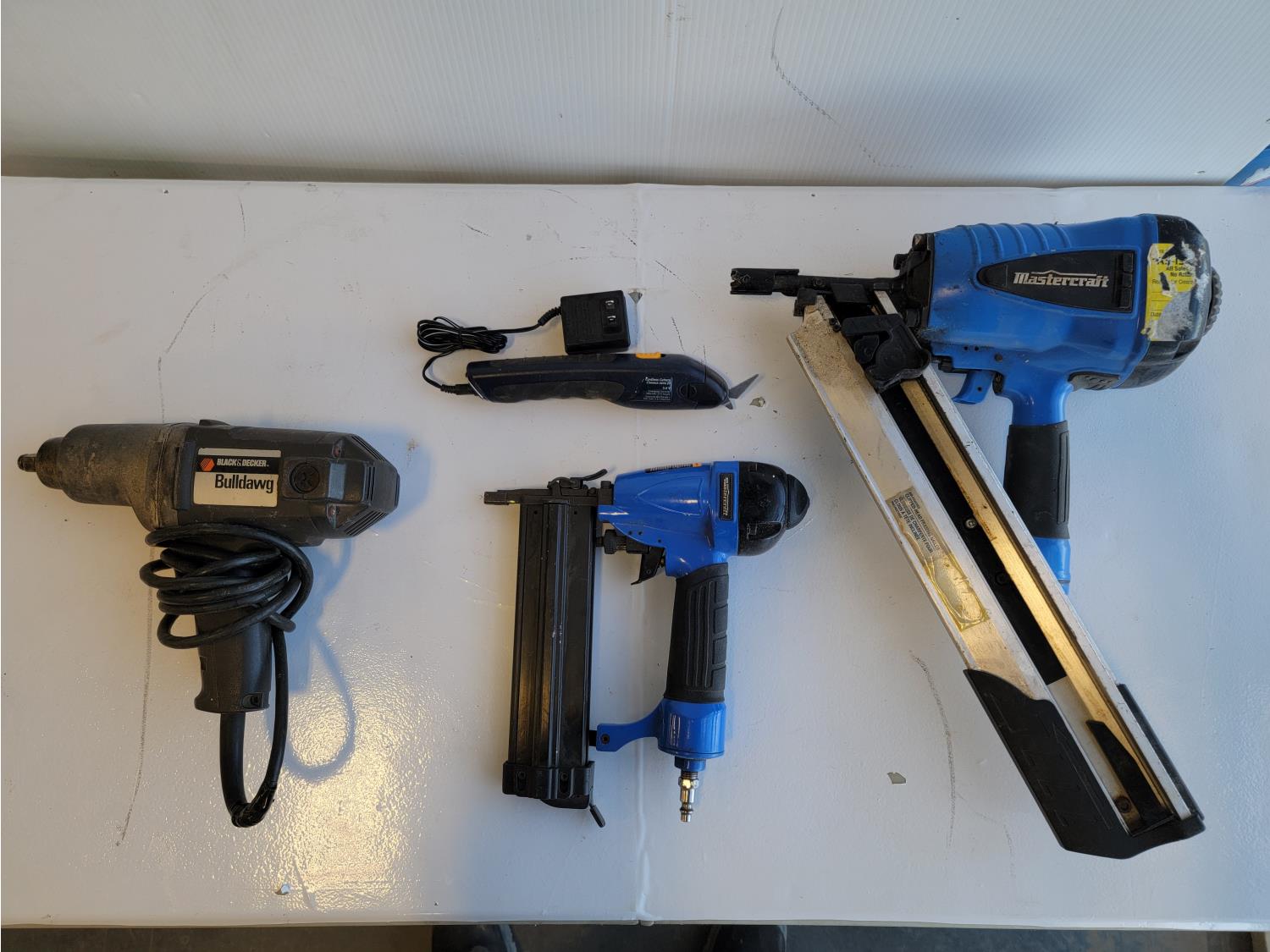 Mastercraft cordless cutter, (2) Mastercraft framing nailers, Black & Decker Bulldawg 1/2 inch drive impact wrench