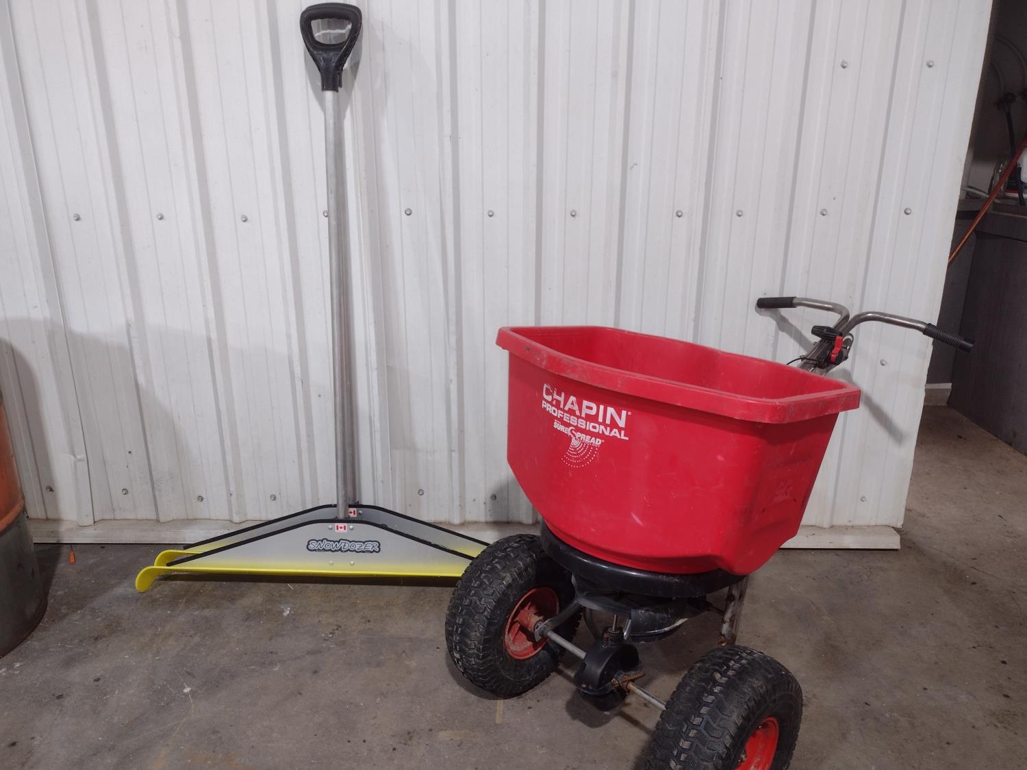 5497 Salt Spreader & (2) Professional Snow Pushers(Unused)
