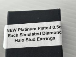 5007 Smartlife Platinum Plated 0.5 Ct Each Simulated Diamond Halo Stud Earrings (Unused)