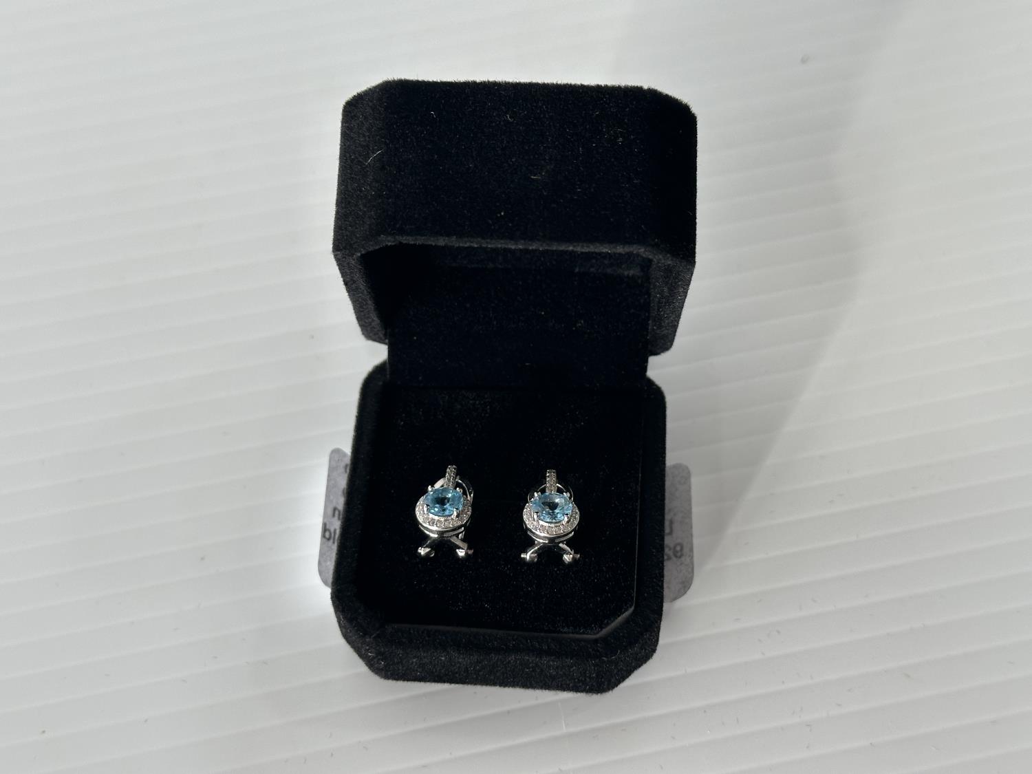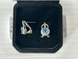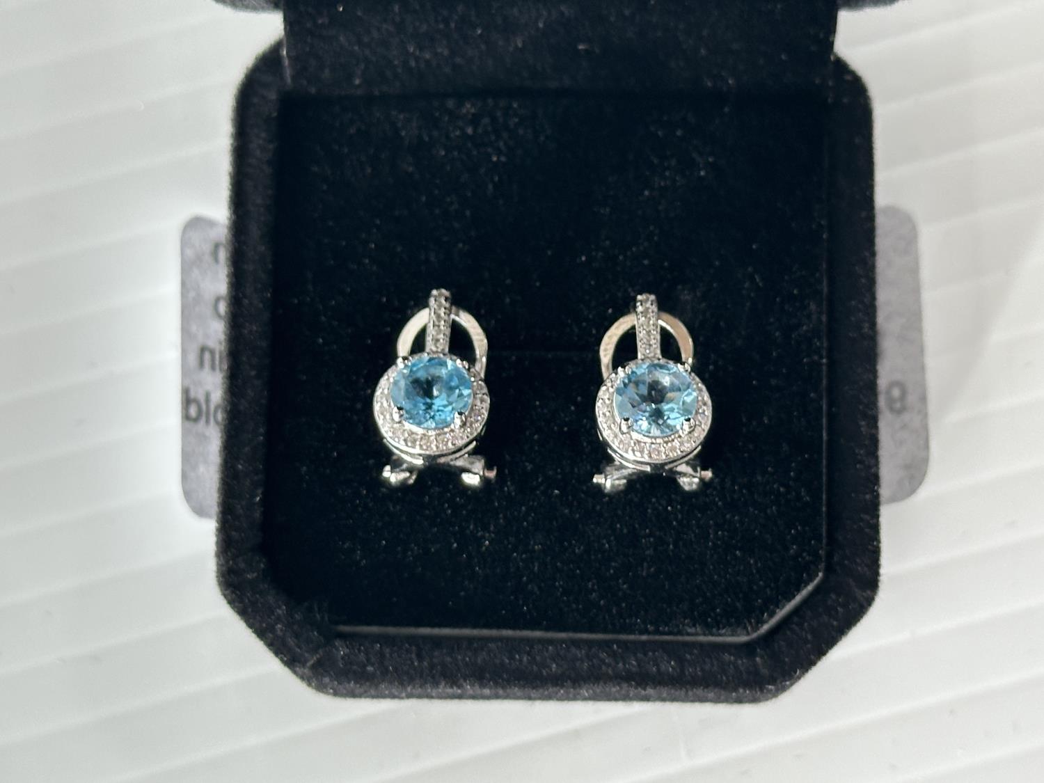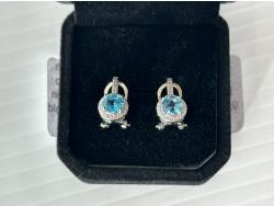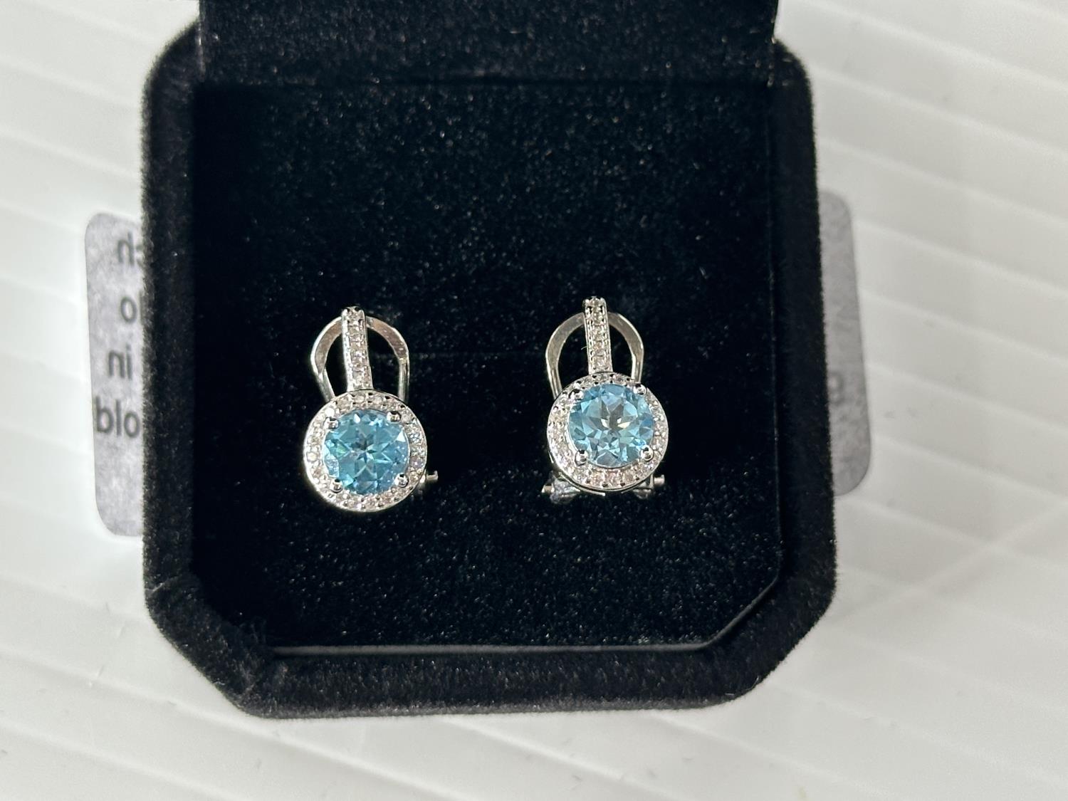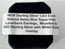 5005 Smartlife Sterling Silver 1.0 Ct Each Natural Swiss Blue Topaz Halo Leverback Earrings (Unused)