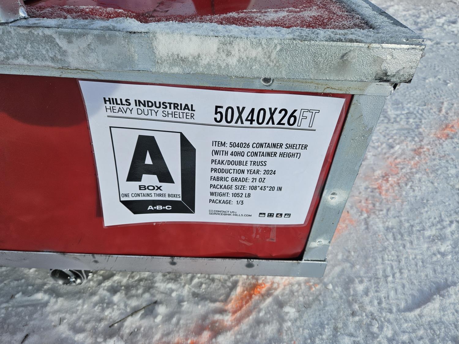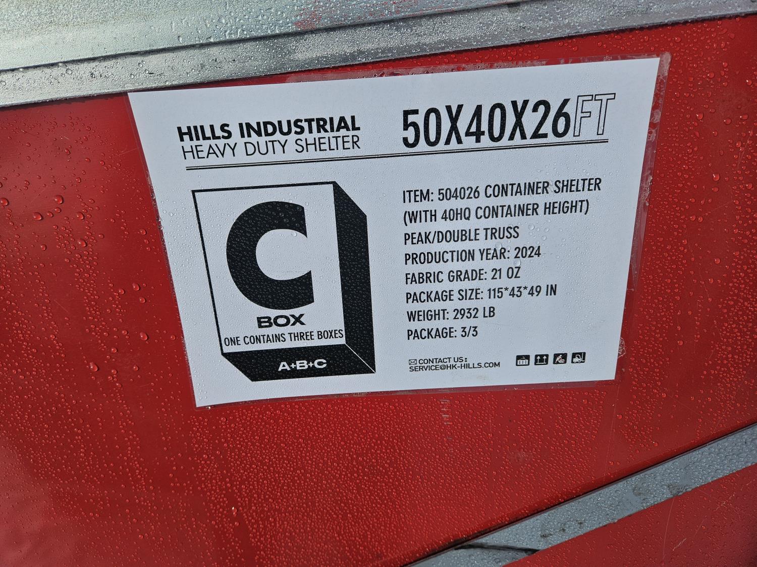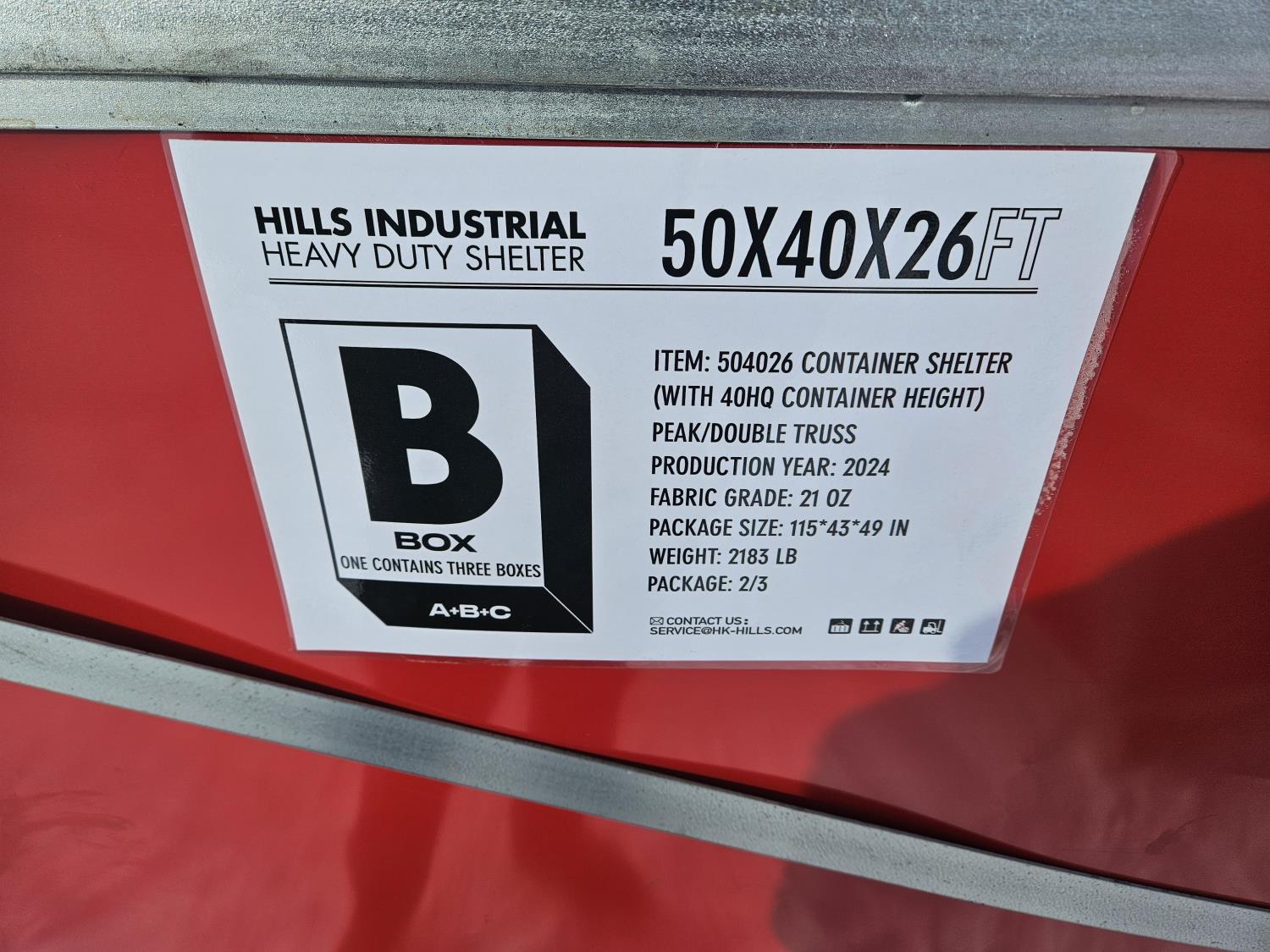368 Hills Industrial 50 Ft W X 40 Ft L X 26 Ft H Heavy Duty Container Shelter (Unused)