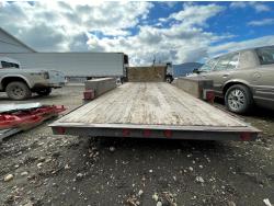 80 inch wide deck, 16 ft tilt deck, wood deck, slide in ramps, ball hitch, stake pockets, Comes with sides
