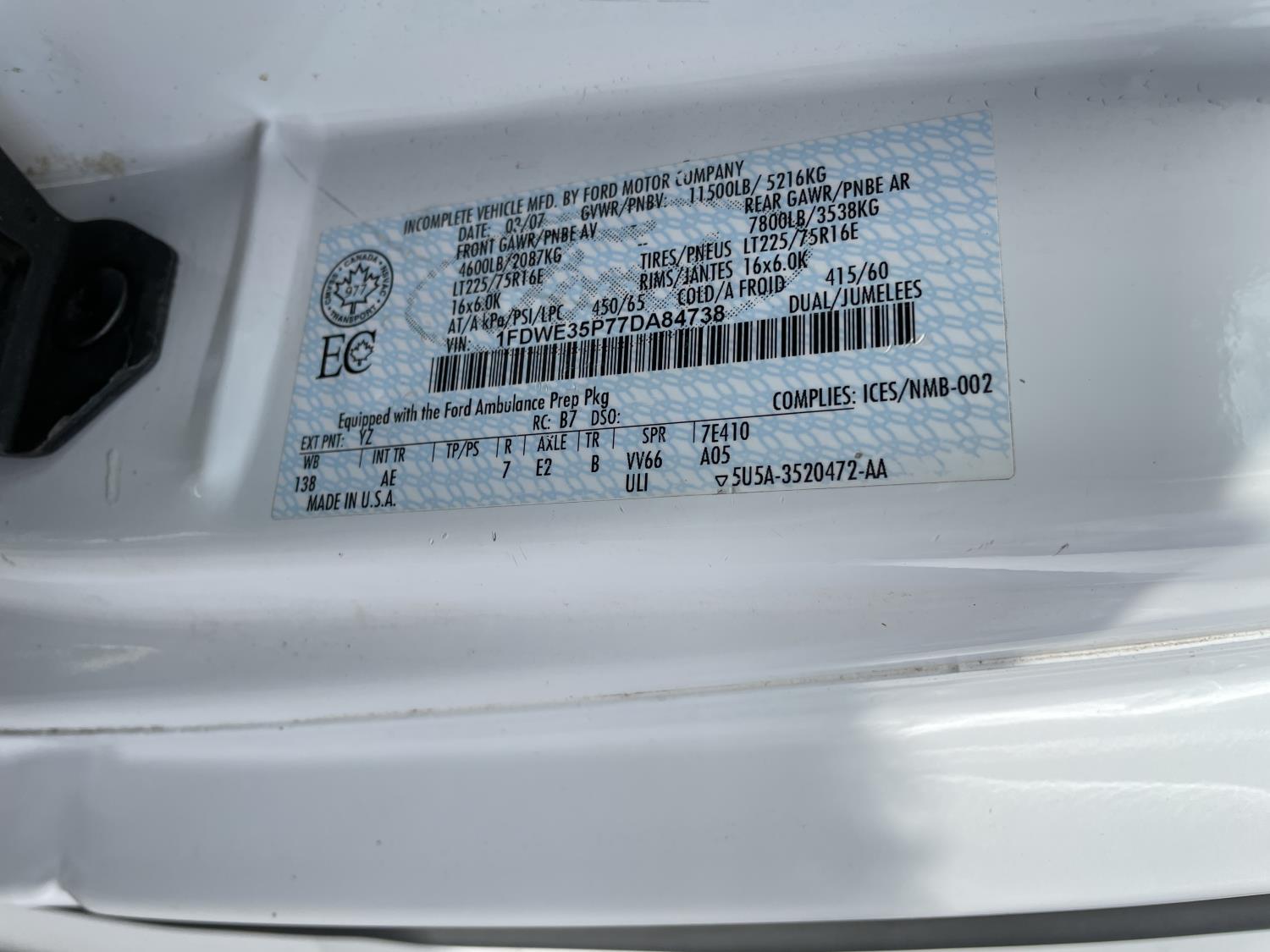 - 1FDWE35P77DA84738