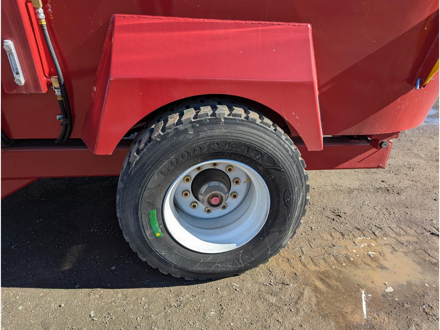 540 PTO, 8 Ft flat front dual discharge extender w/10 inch hydraulic extension, DG500 scale, 435/50/R19.5 tires, Factory warranty available through a certified dealer.