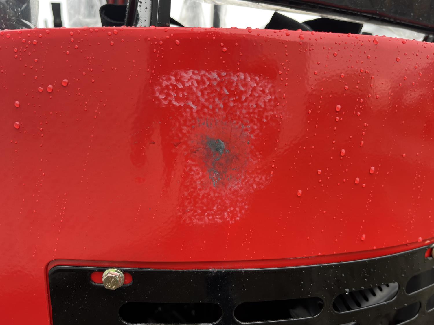 Open station, gas engine, 16 inch dig bucket, manual thumb, 32 inch stick, backfill blade, rubber tracks