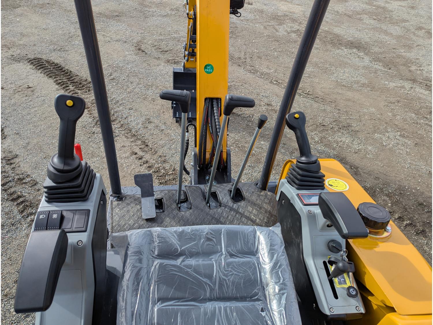 Open station, pilot controls, RATO gas engine, 16 inch dig bucket, hydraulic thumb, 1 auxiliary hydraulics, swing boom, backfill blade, Off Road Undercarriage, rubber tracks