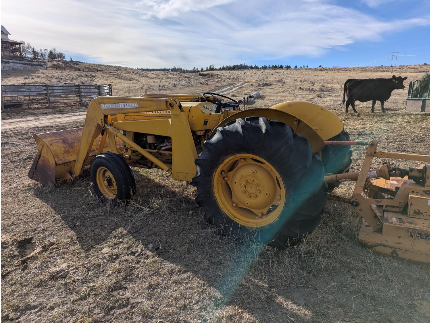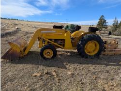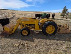 Loader, 50 inch bucket, Continental 2.2 L 45 HP, Gas engine, 34 PTO HP, 6 speed manual transmission, open station platform, 540 PTO, 3 point hitch, track weights, 7.5L-15 front tires, 14.9-24 rear tires, *(Rear rough cut mower in images not included)*