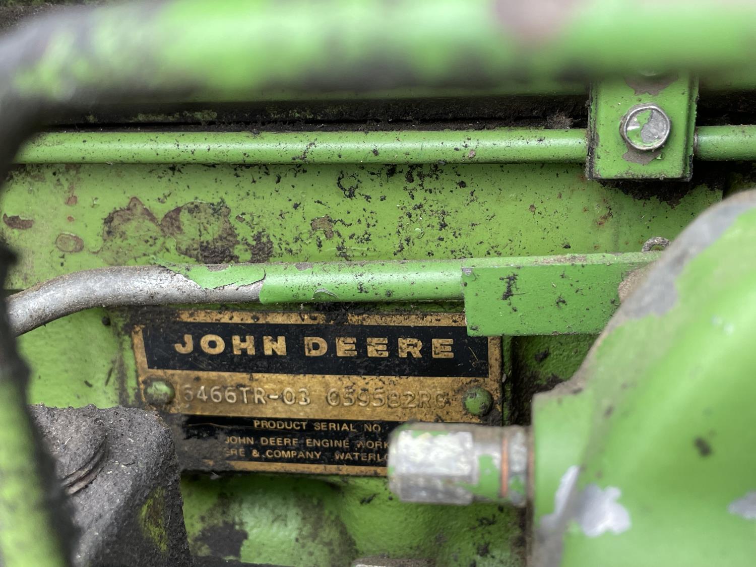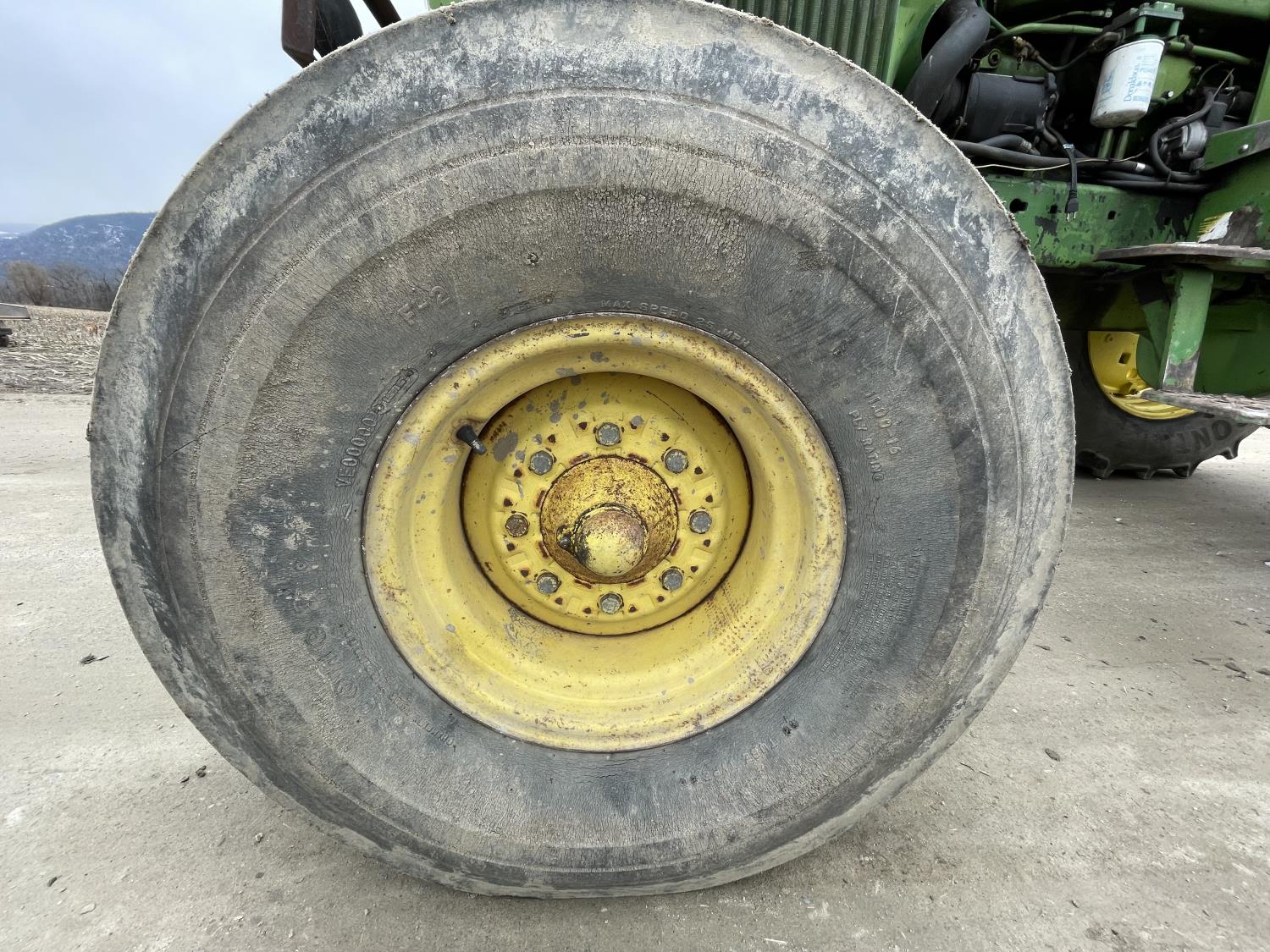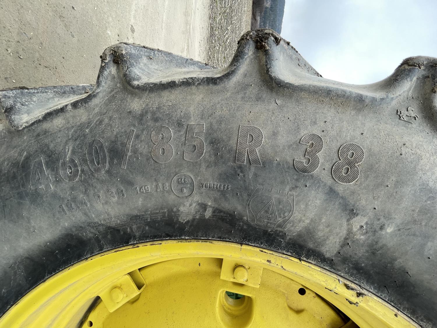 John Deere 6466TR-03 6 cylinder diesel engine, cab, ROPS, radio, 540/1000 PTO, 2 rear hydraulic outlets, 11.00-16 front tires, 460/85R38 rear tires