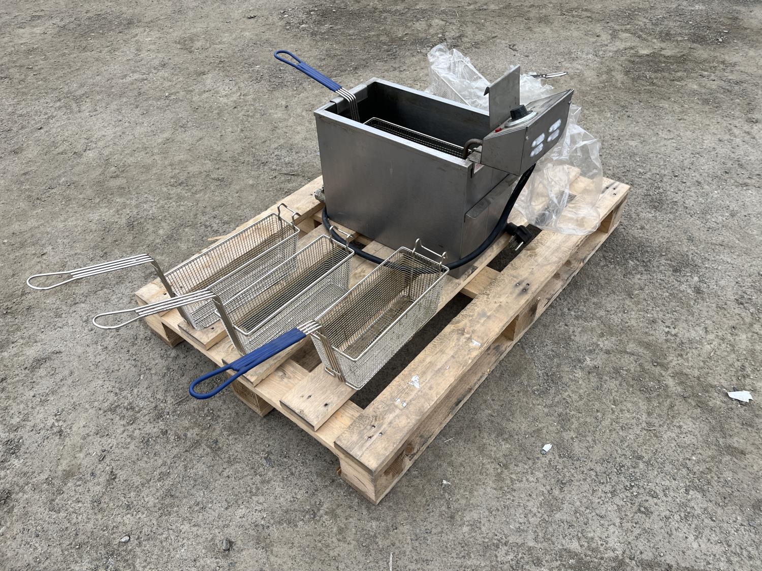230 Volt, 5750 watt, 1 phase commercial deep fryer. (7) fryer baskets, lever drain valve. Serial # KDEF-00965