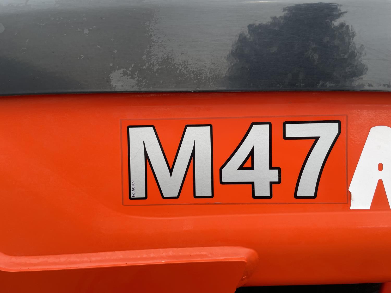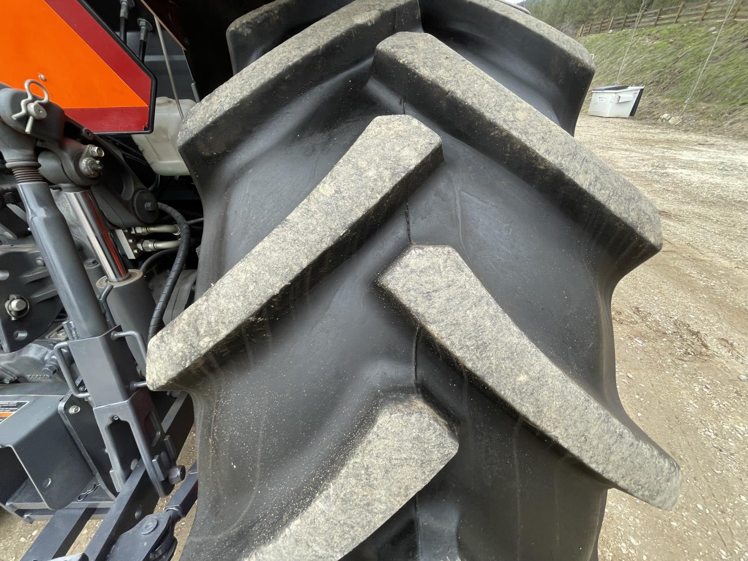 ALo M47 ride control loader, Kubota V3800-TI-CRS 230 cu in 4 cylinder 105 HP, diesel engine, 97 PTO HP, 24 speed power shift transmission, 19 GPM hydraulic pump, joystick with 3rd function, cab, ROPS, shuttle shift, A/C, radio, air ride seat, buddy seat, 540/1000 PTO, 3 point hitch, 2 rear hydraulic outlets, 340/85-24 front tires, 460/85-34 rear tires, joystick with 3rd function