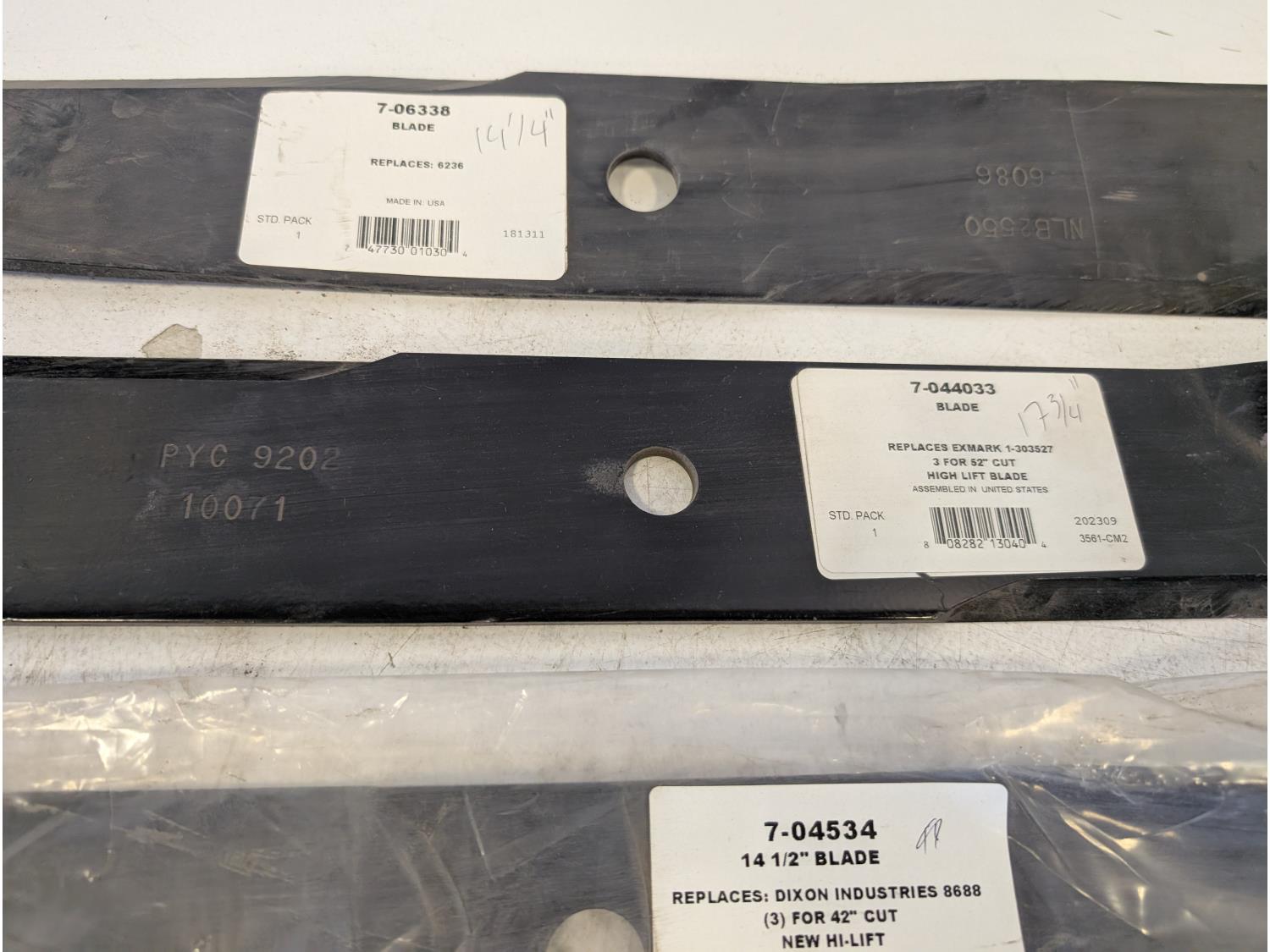 5529 (7) Various Size Mower Blades (Unused)