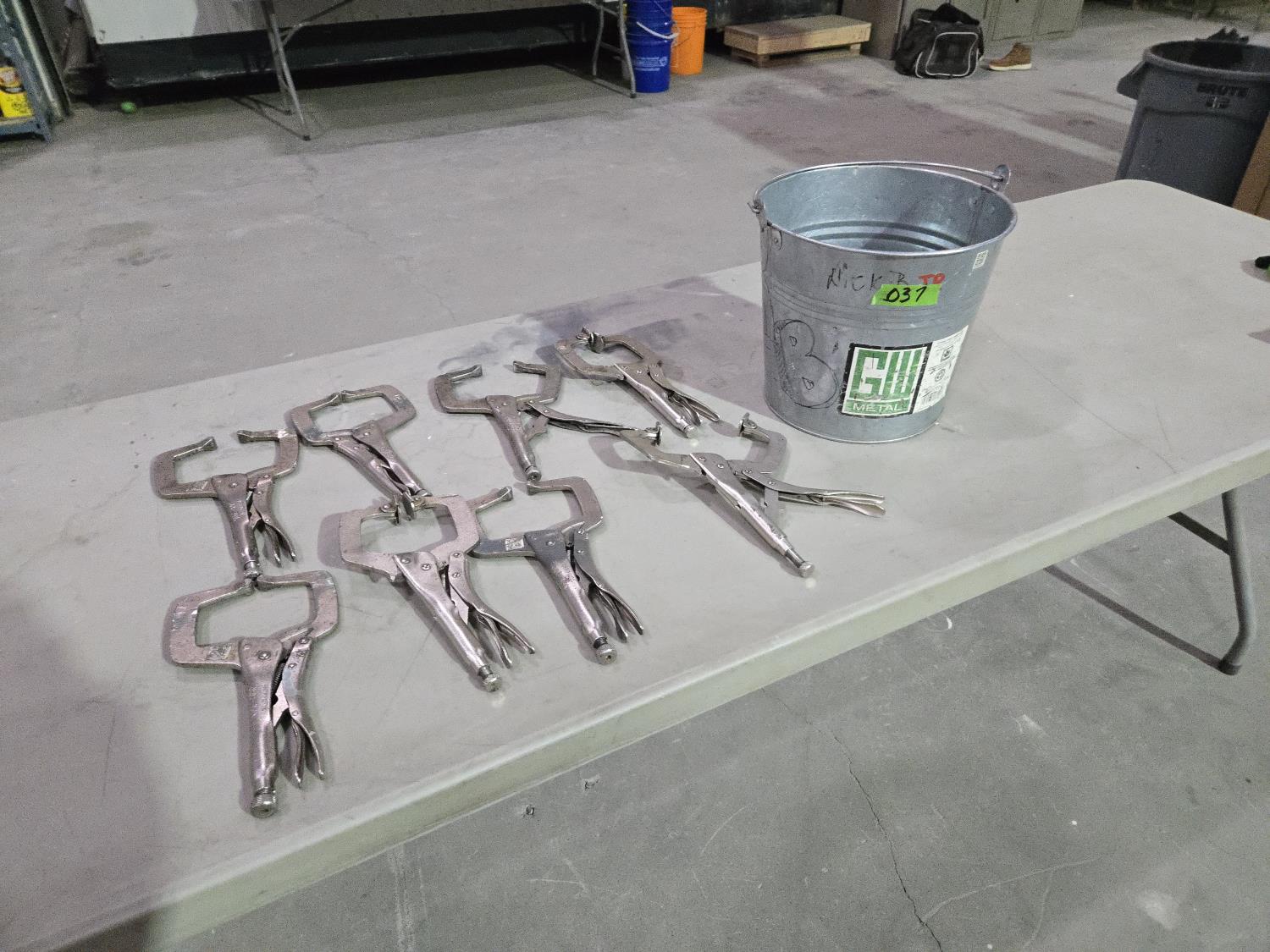 5878 (8) Vise Grip Style Welding Clamps & Galvanized Pail