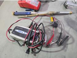 Trickle charger, Milwaukee charger, miscellaneous air line parts, air sander, air pop riveter, small roll of wire