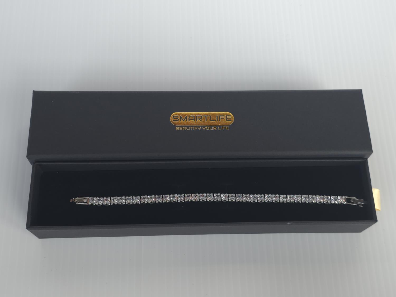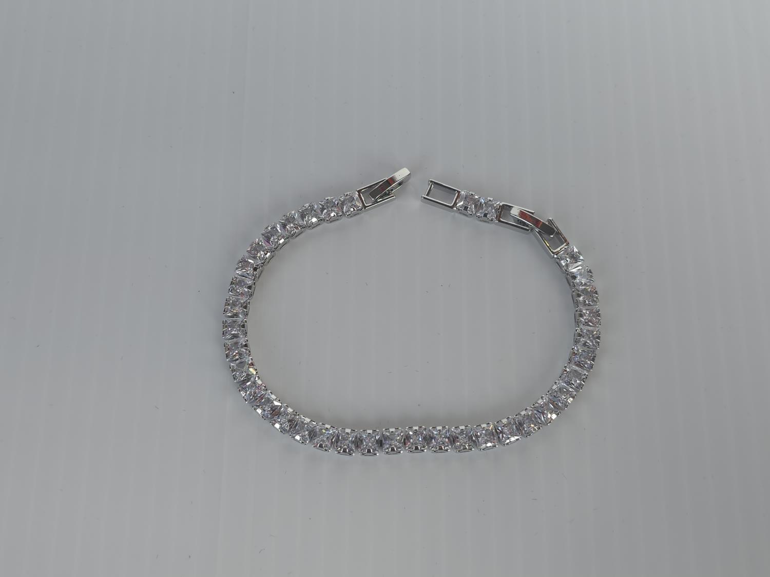 5017 Smartlife Platinum Plated 4.0 mm 18.5 Cttw Princess Cut Tennis Bracelet (Unused)