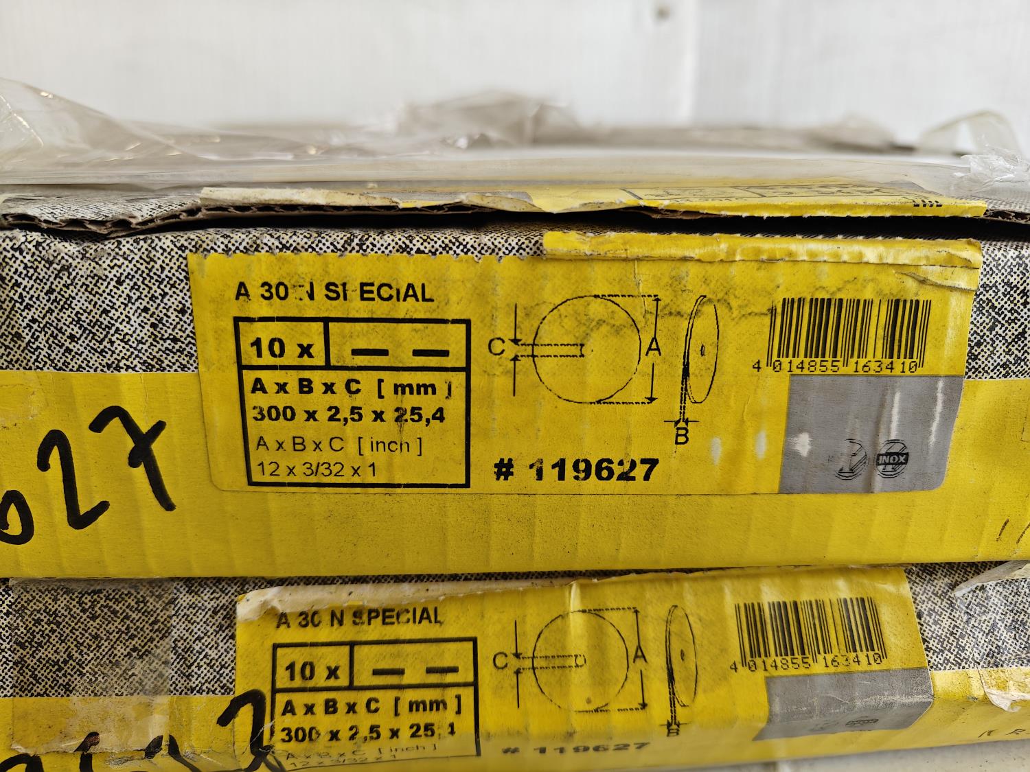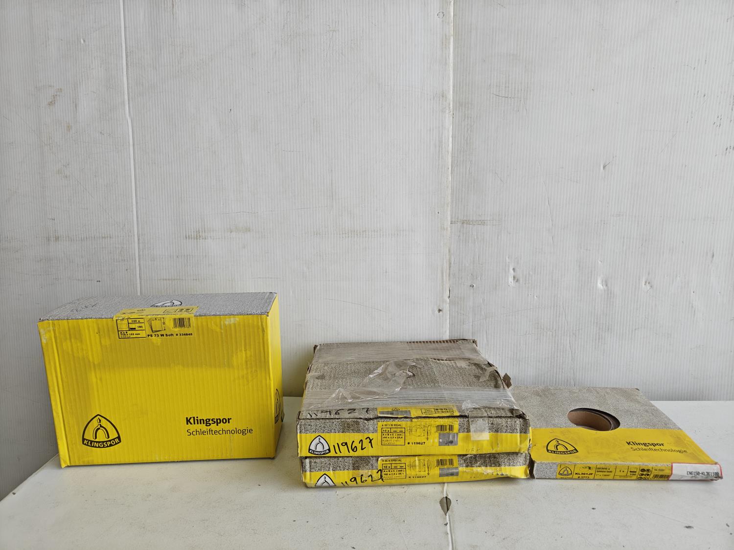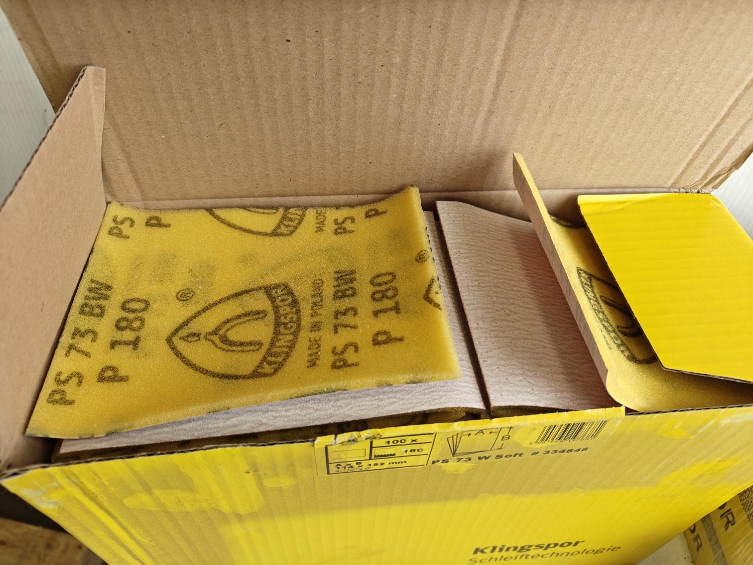 (20) 12 inch cut-off discs, 1 inch x 164 ft 100 grit sand paper and (100±) 4-1/2 inch x 6 inch 180 grit sanding sheets