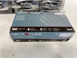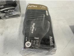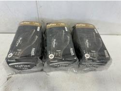 (1) box size large nitrile gloves, (3) pairs size L/XL polyester gloves, (36) pairs size 9 HyFlex gloves