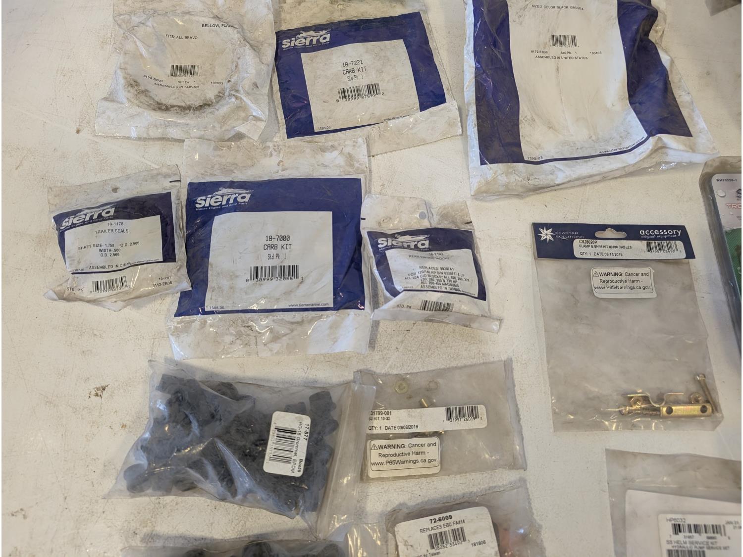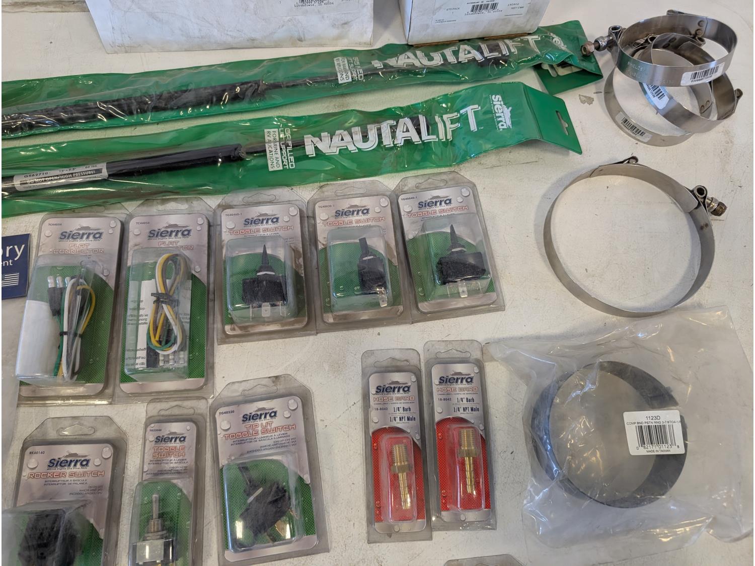 Carb kits, bilge pump hose, trolling motor plugs, marine fuses, rocker and toggle switches