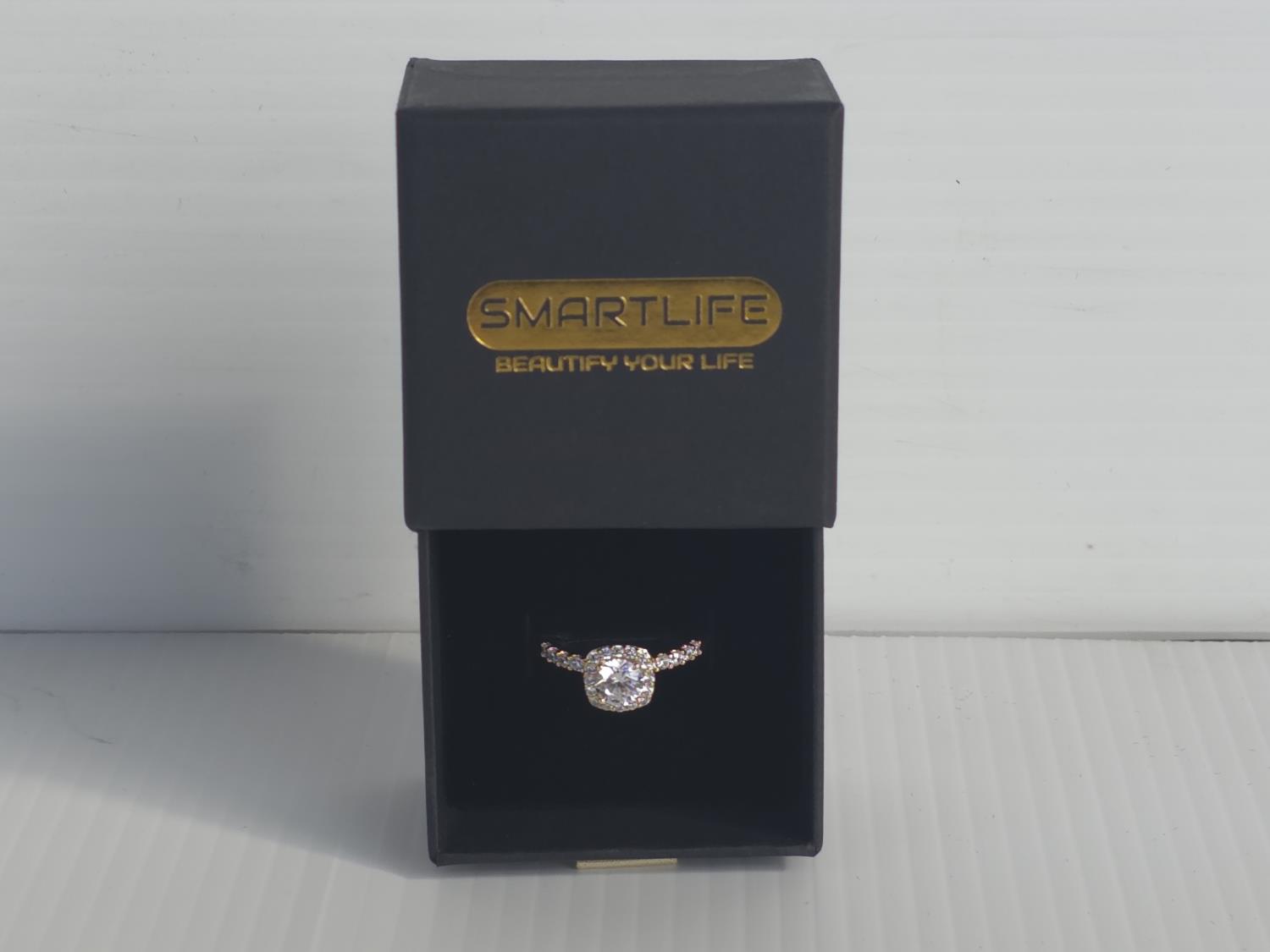 5011 Smartlife 18K Gold Plated 1.0 Ct Simulated Diamond Halo Ring - Size 9 (Unused)