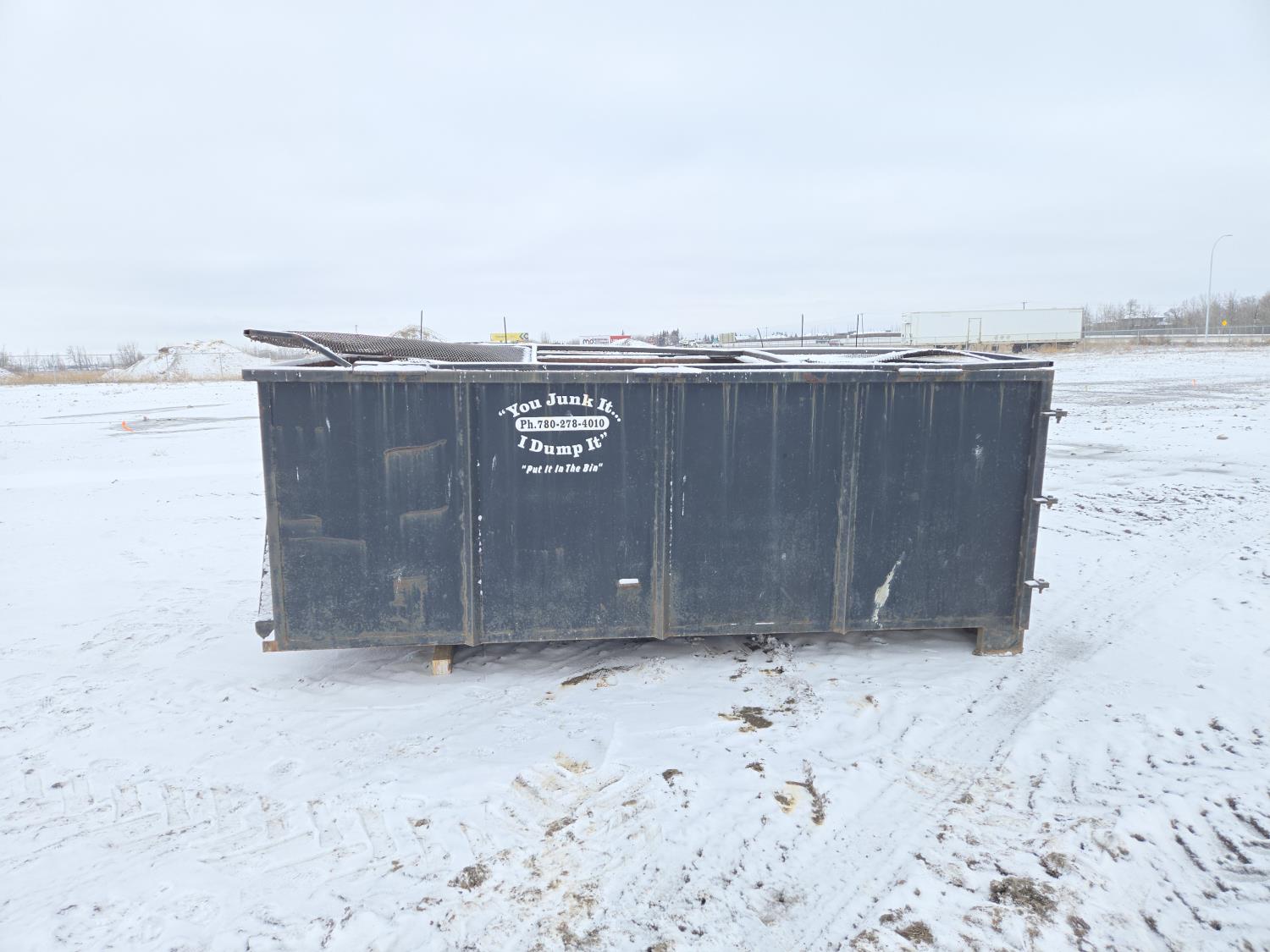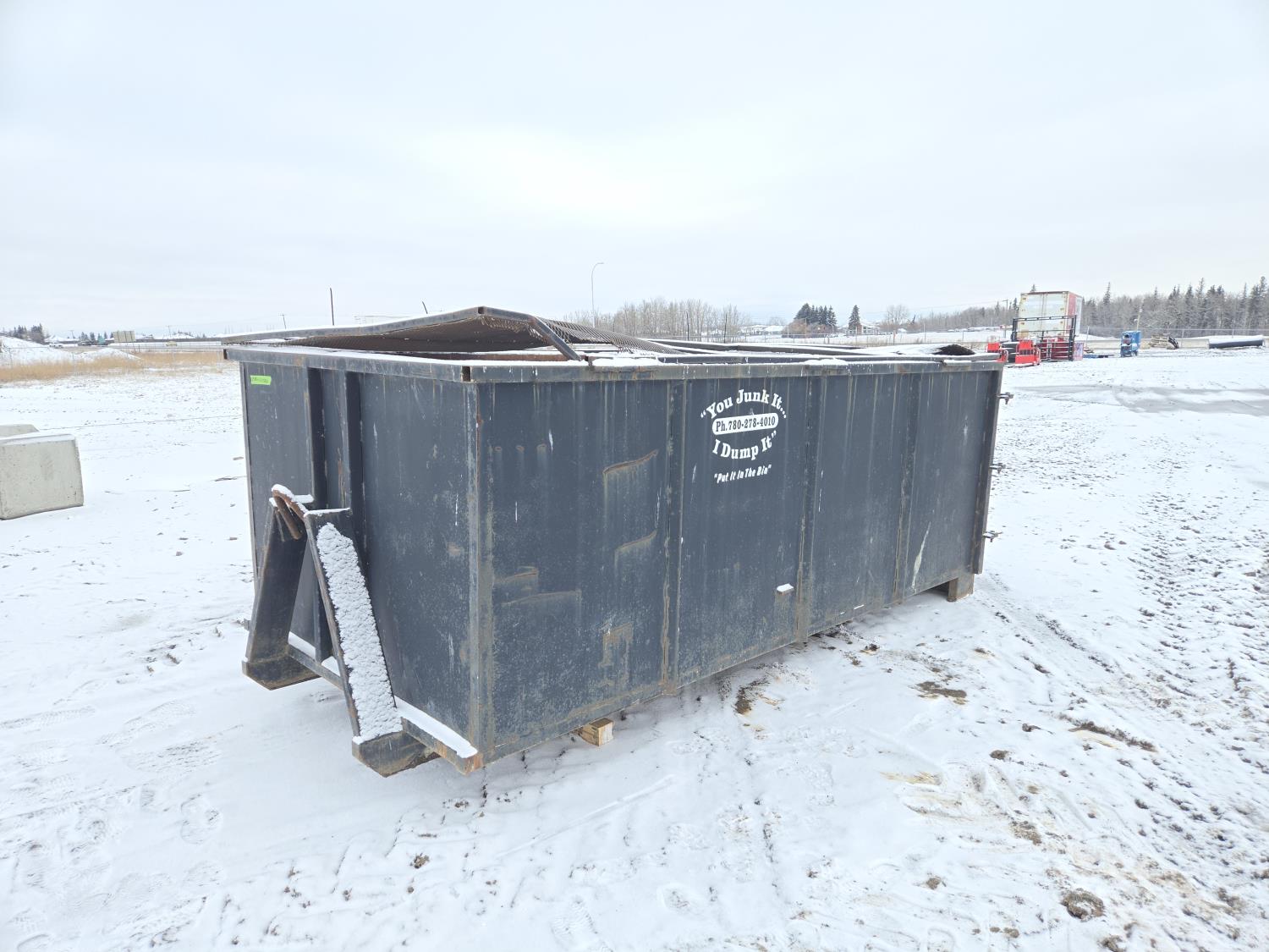 125 10 Yard Roll Off Bin with Hinged Steel Mesh Lid